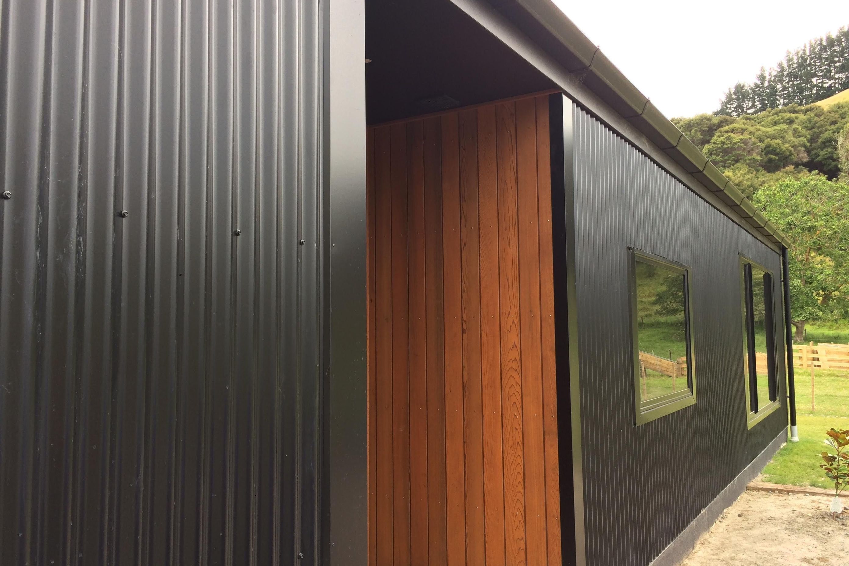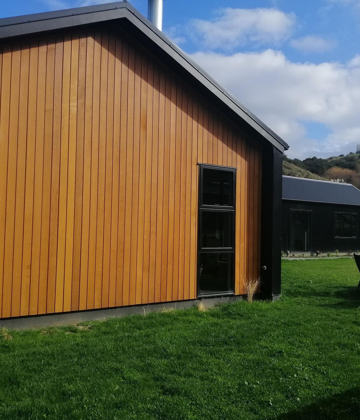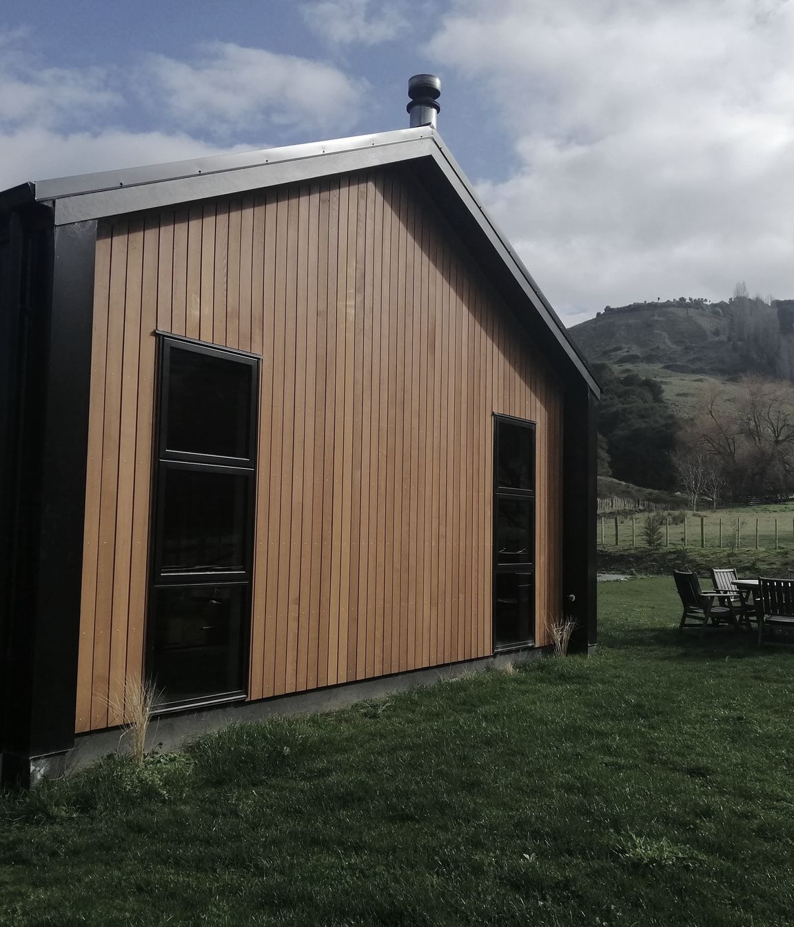 ArchiPro Project Summary - Contemporary rural home in Eskdale featuring black coloursteel cladding, cedar accents, open-plan living, and sustainable solar power.