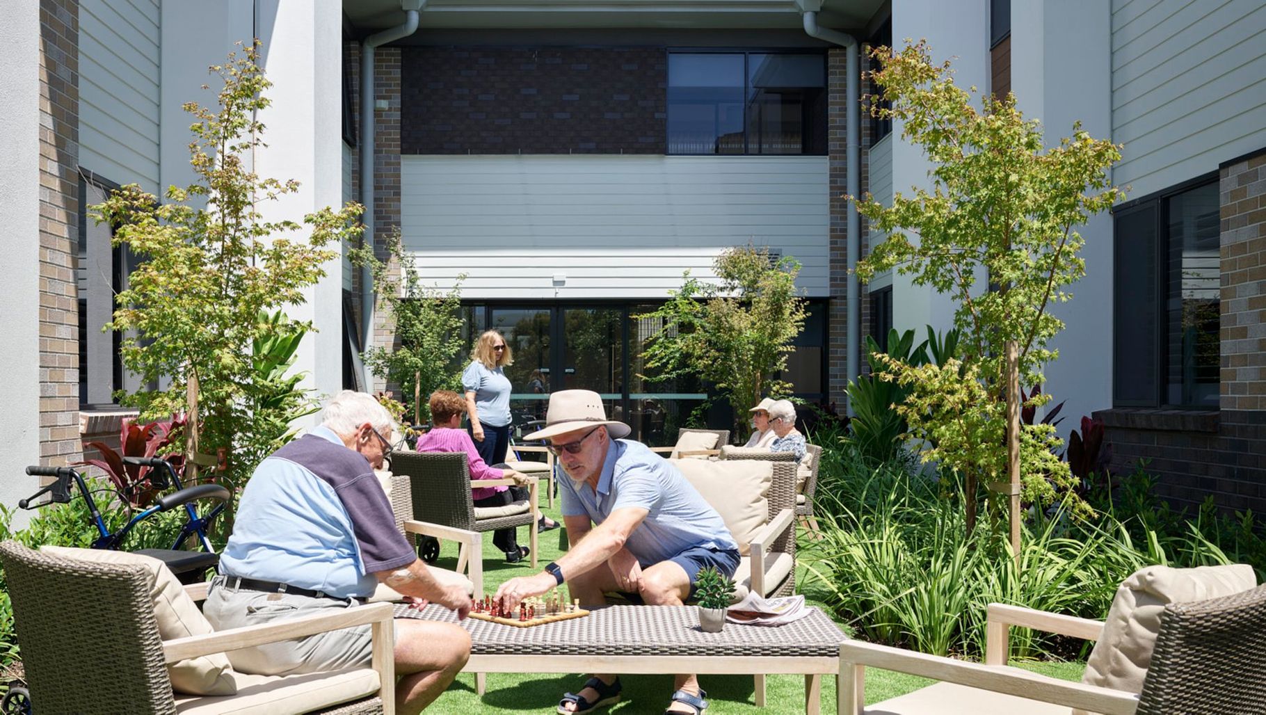 ArchiPro Project Summary - Estia Health Maroochydore emphasizes a homely atmosphere, community connection, and harmony with the sub-tropical climate, featuring a welcoming lobby, intimate gathering spaces, and lush courtyards that enhance natural light and outdoor views.