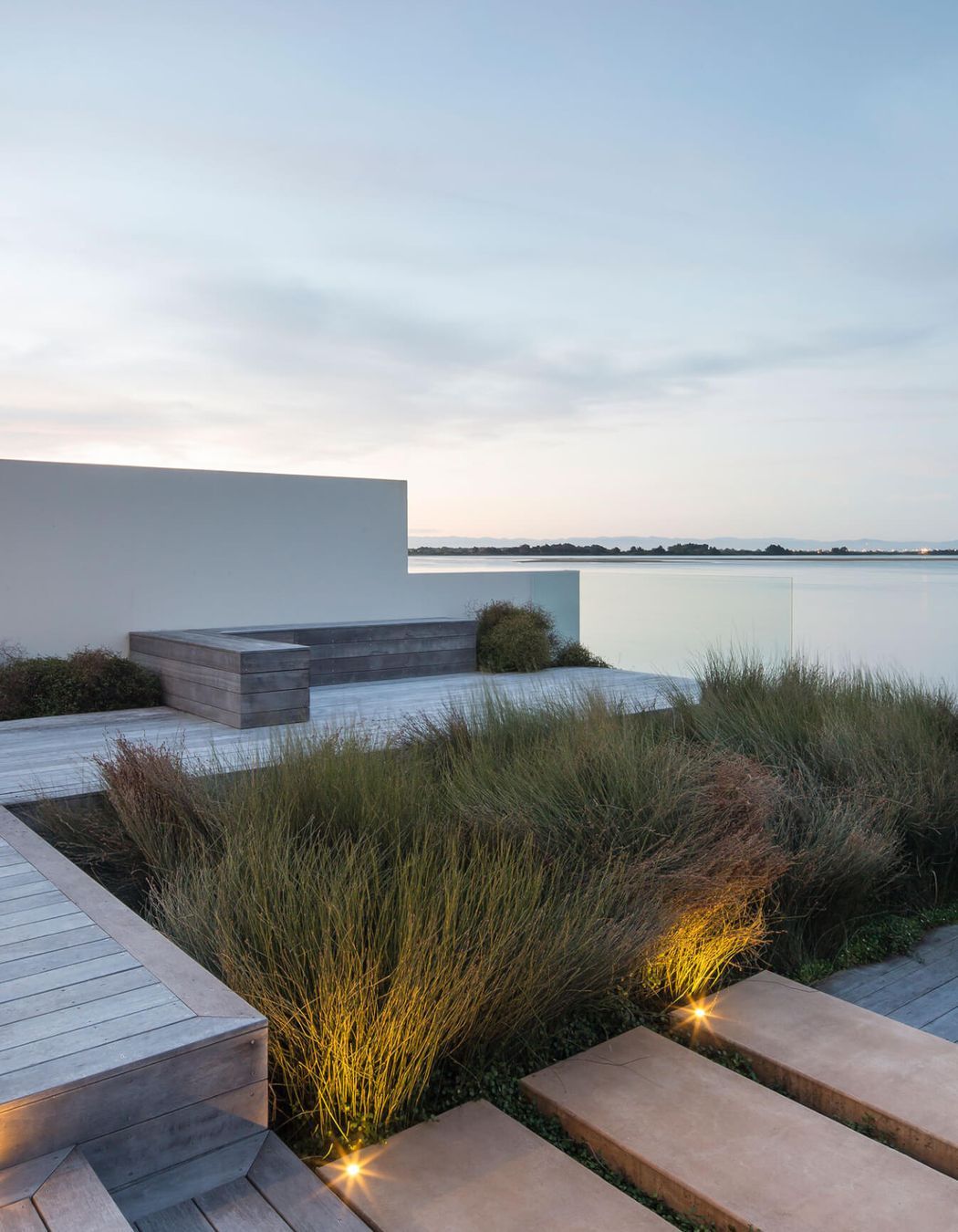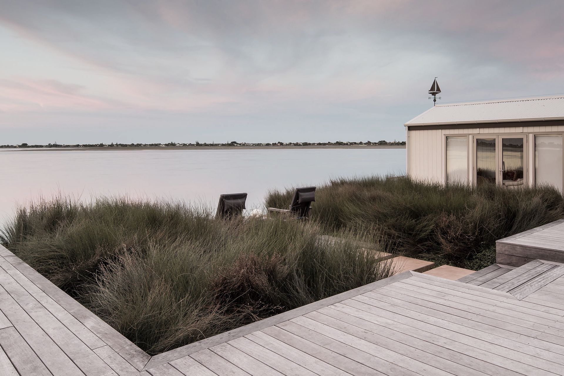ArchiPro Project Summary - A serene sanctuary inspired by the dynamic estuary, featuring flowing 'mood rooms' and a diverse planting palette of native coastal species and exotic specimens for a tranquil outdoor experience.