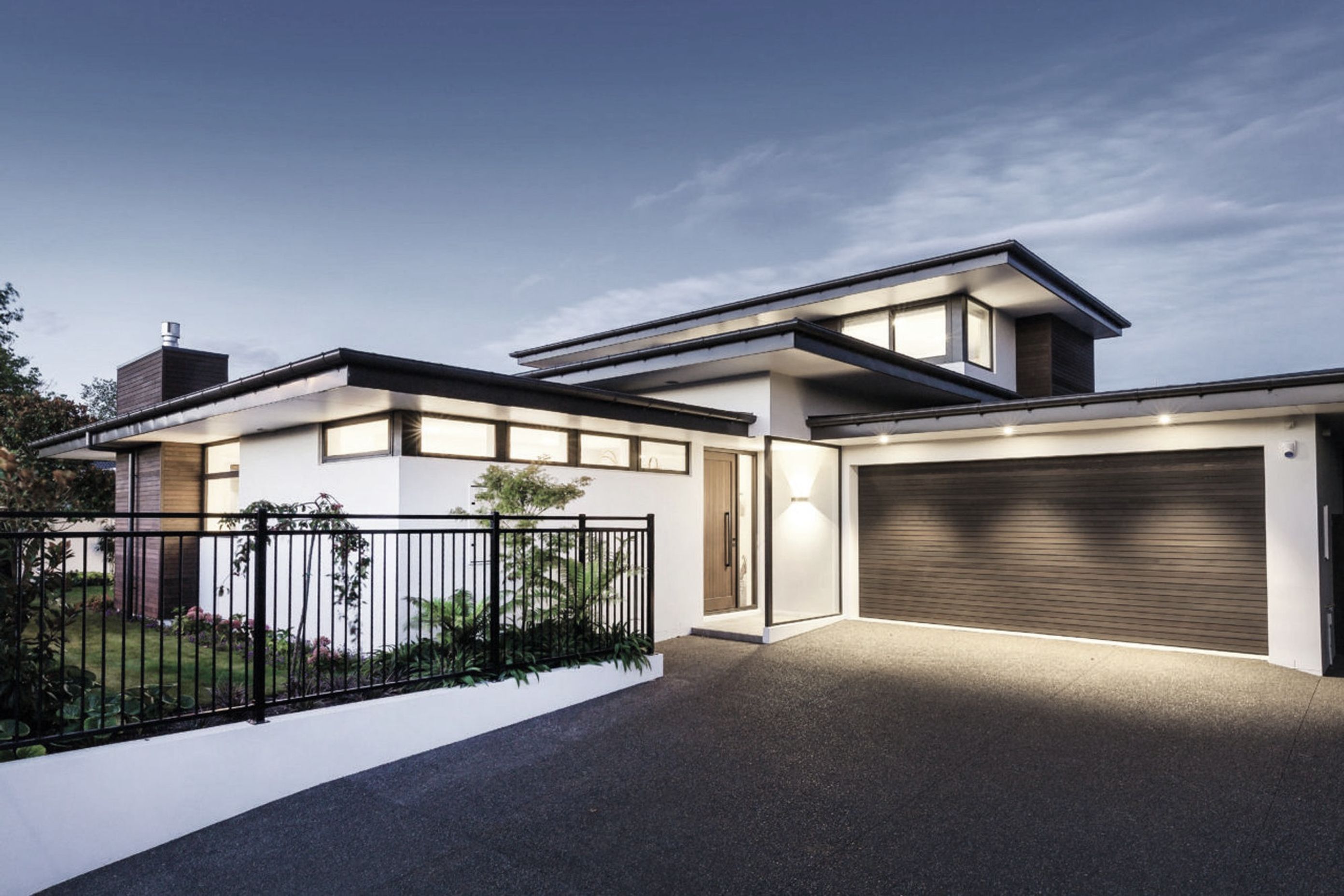 ArchiPro Project Summary - Award-winning Christchurch residence featuring a timeless Rockcote plaster exterior, stained cedar details, and a premium INTEGRA lightweight concrete façade for robust and future-proof living.
