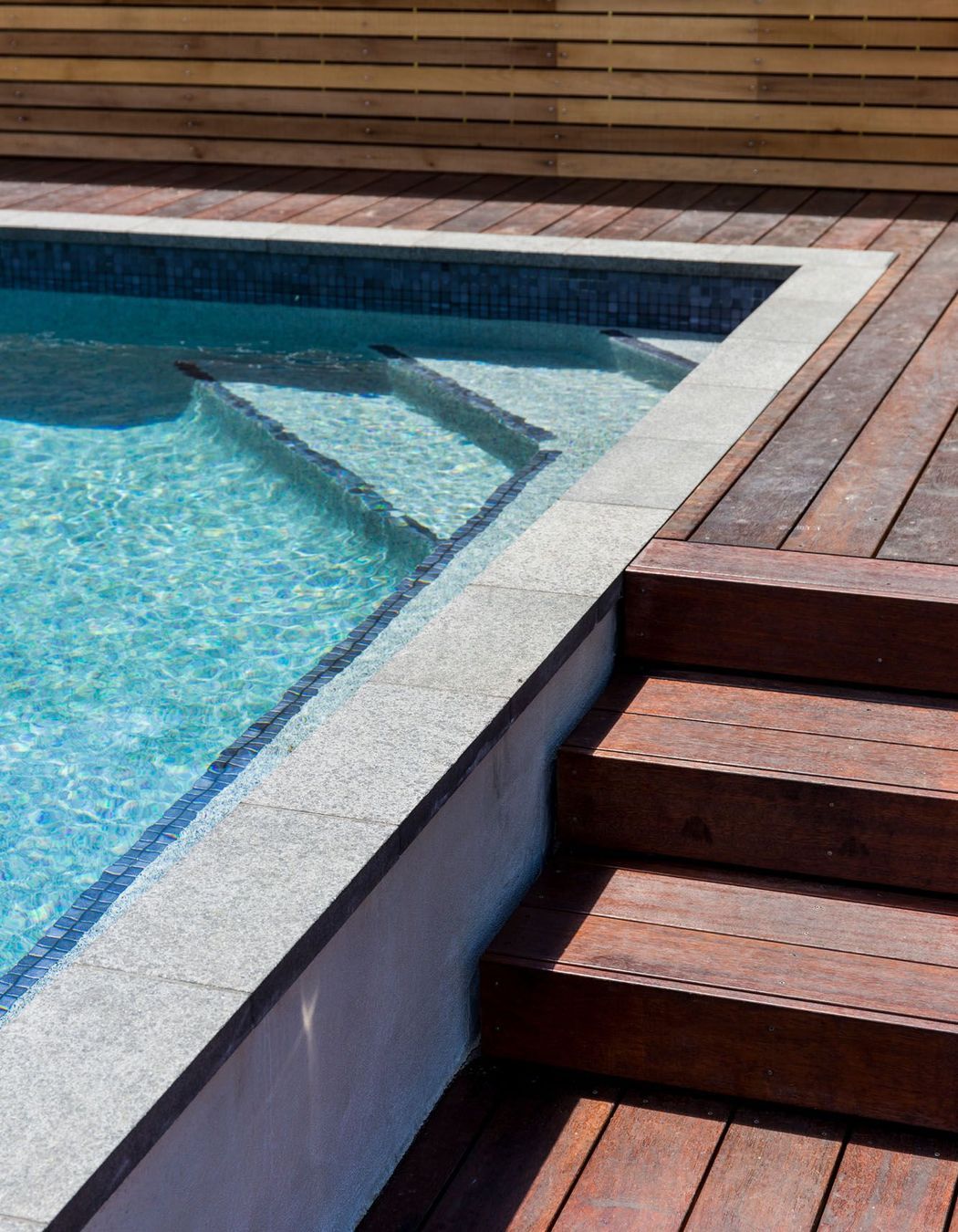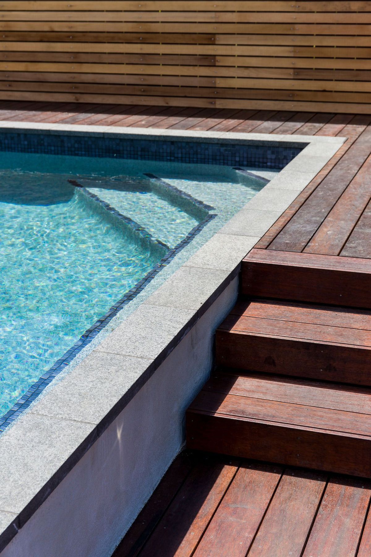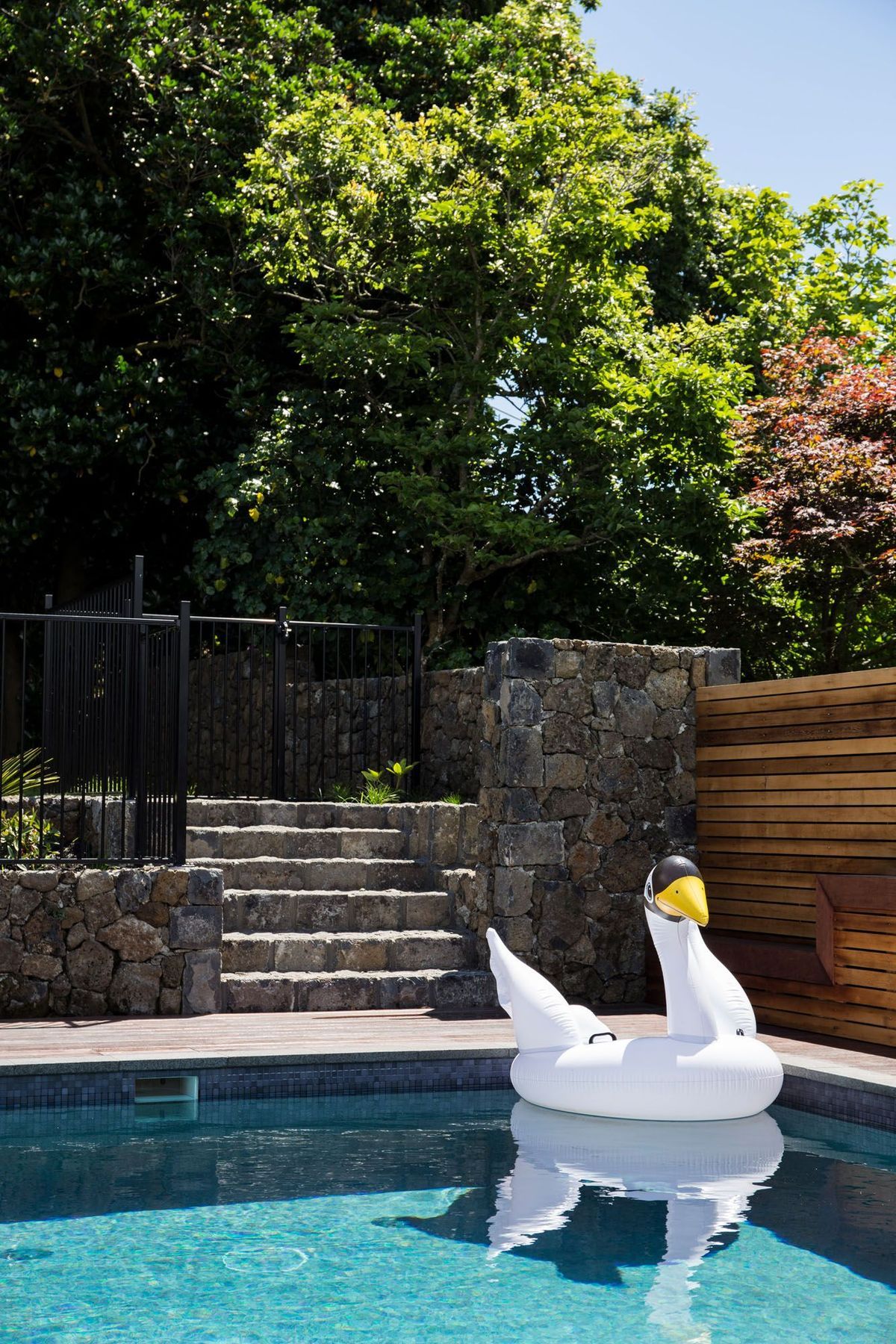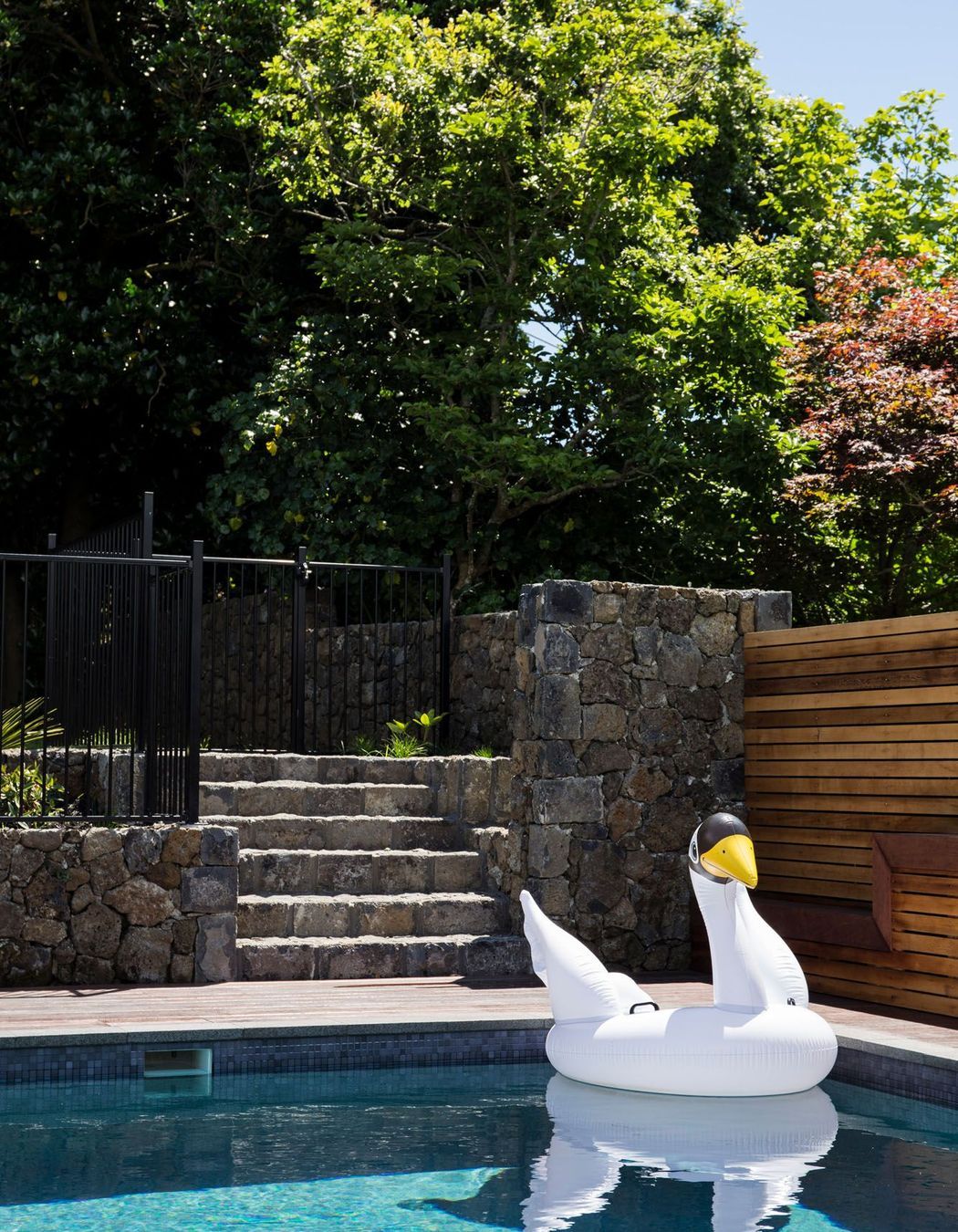 ArchiPro Project Summary - Elevated pool design and subtropical landscaping create a lush sanctuary in Mt Eden, integrating seamlessly with the multi-level site.
