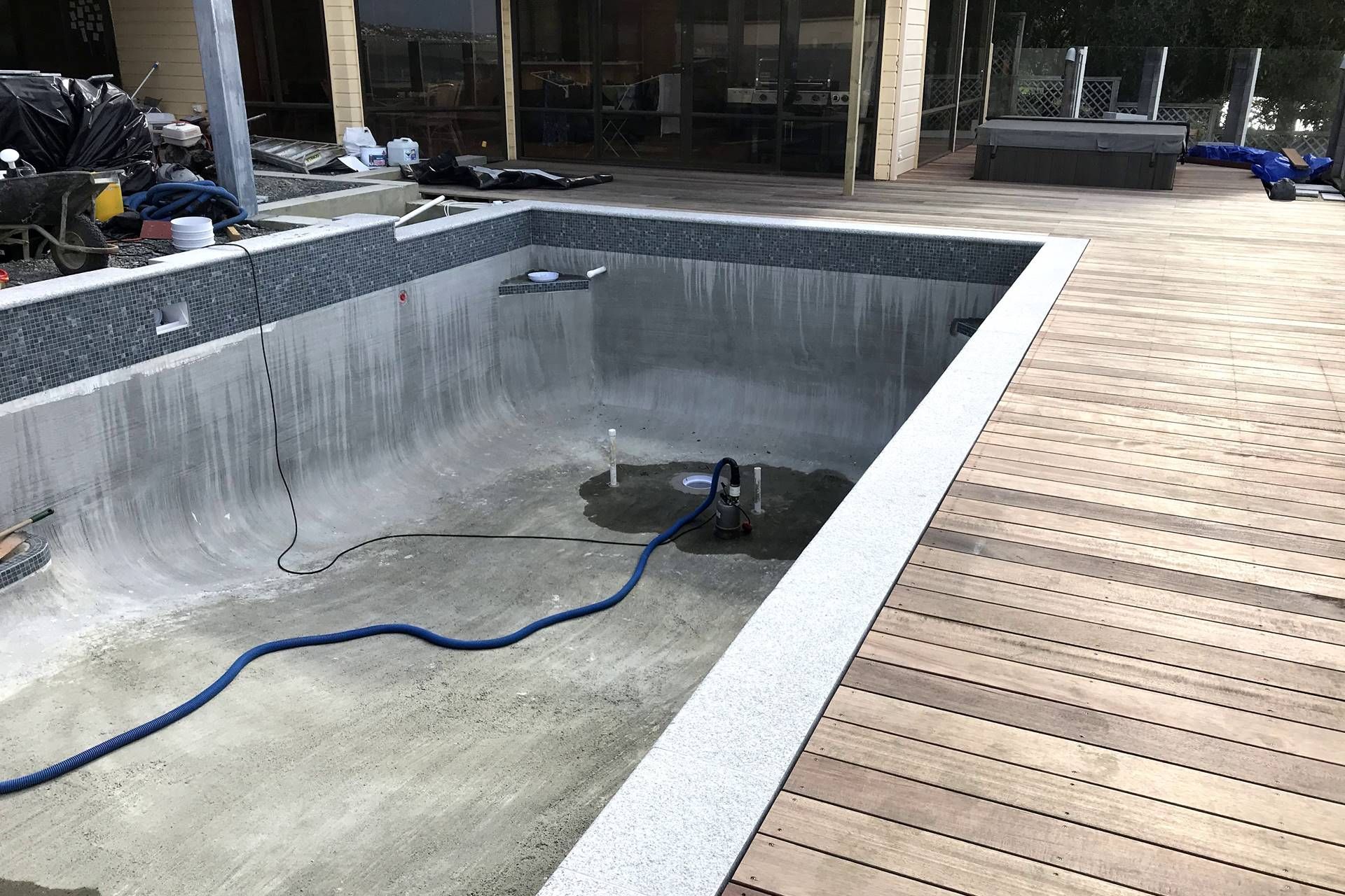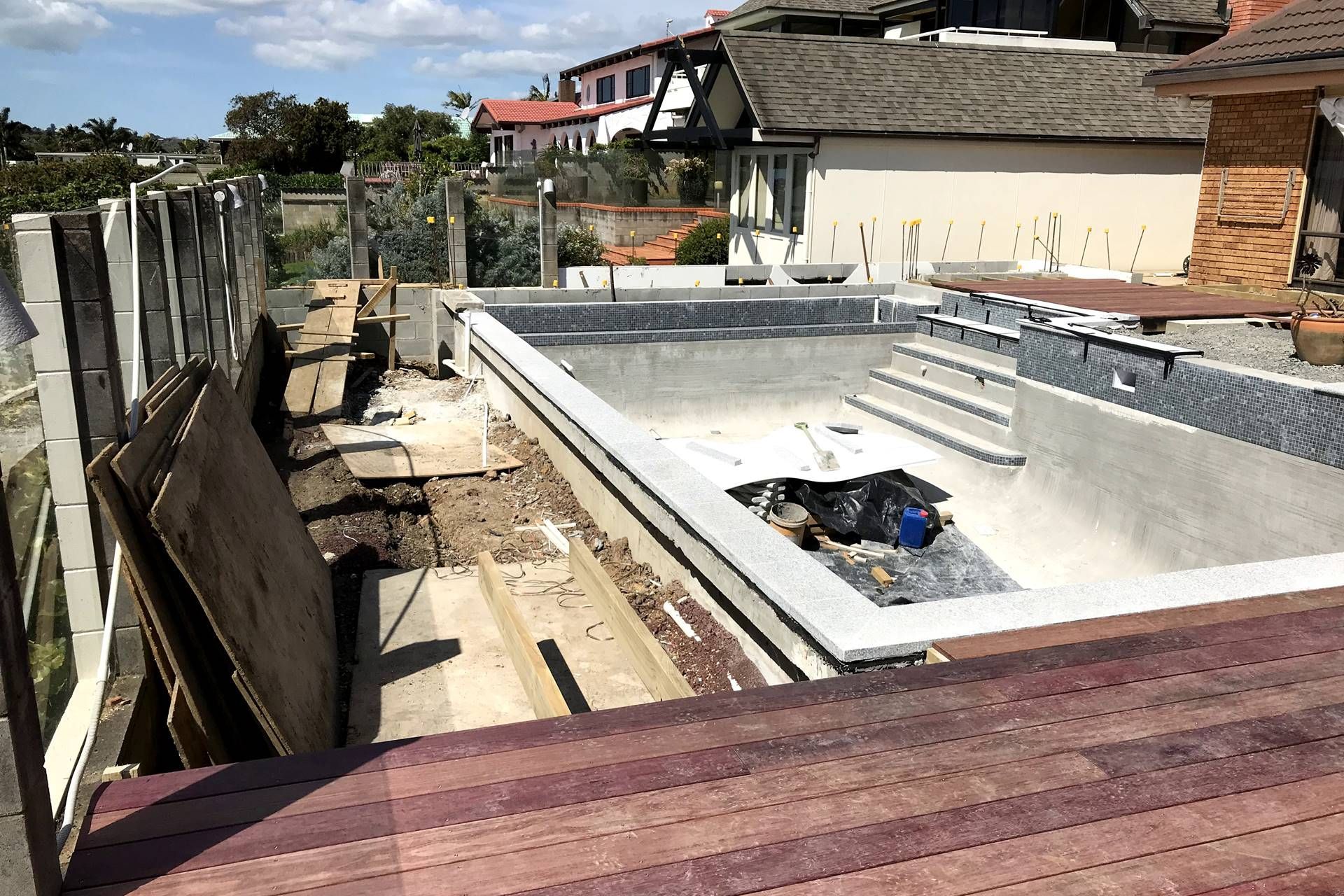 ArchiPro Project Summary - Comprehensive renovation featuring the removal of an old pool, installation of new decking, planting, block walls, and an automatic pool cover.