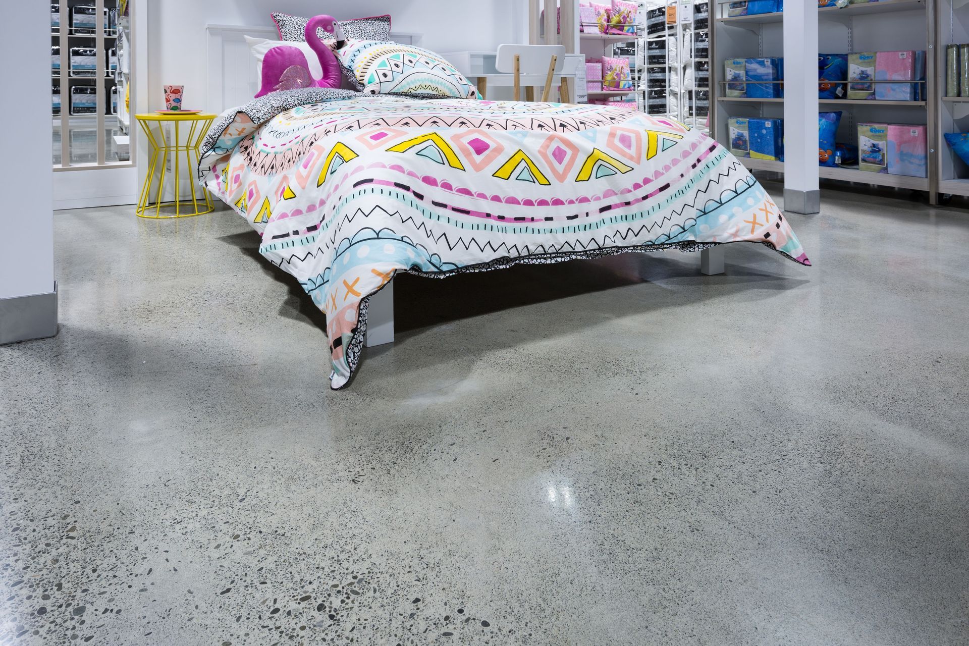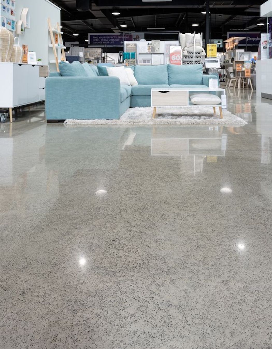 Megafloor. Megafloor is a New Zealand designed and developed range of diamond polished floor finishes.A refinement of raw natural elements, unlocking the natural beauty of regional aggregates hidden in a conventional building material, resulting in a high strength, durable and fashionable surface.