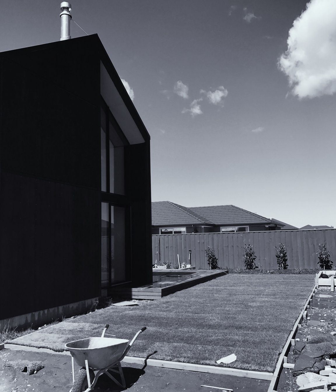 ArchiPro Project Summary - The Farringdon project features a modern garden building with sleek monochrome design, versatile functionality, and durable siding materials.