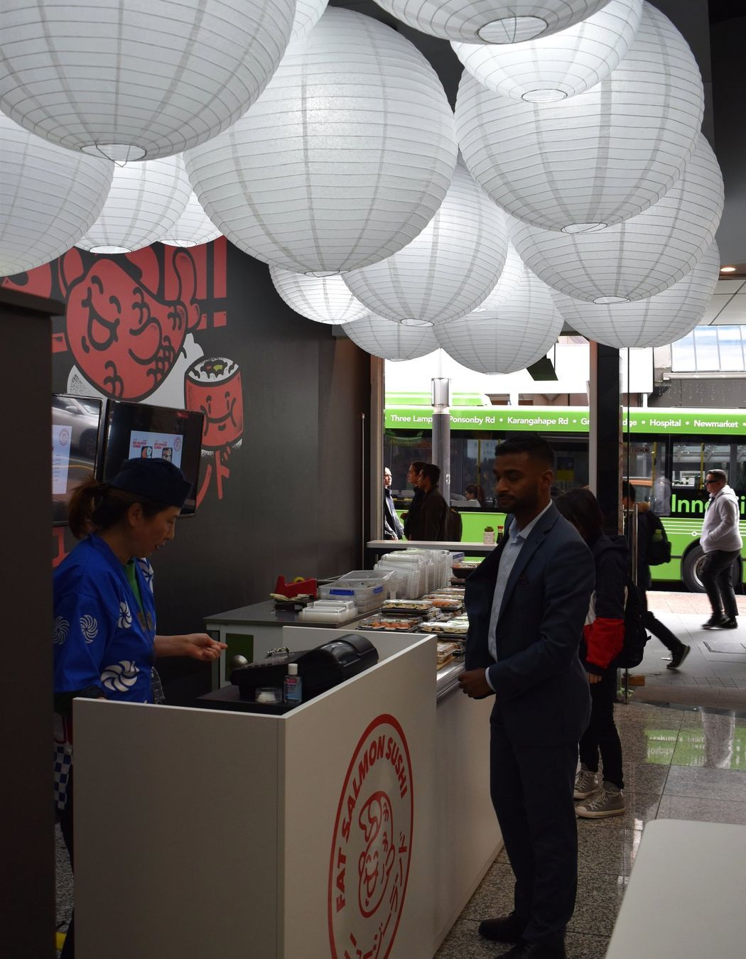ArchiPro Project Summary - Revitalization of a compact sushi bar in Auckland's CBD, featuring a fresh brand identity, strategic space planning, and impactful lighting solutions to create an inviting urban dining experience.