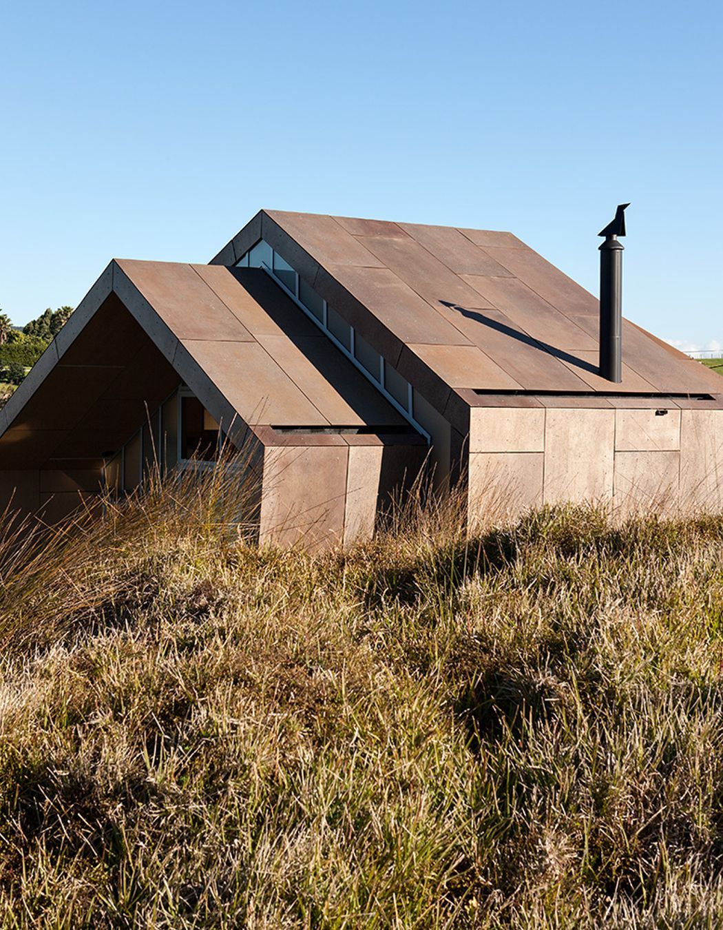 ArchiPro Project Summary - Fe3O4 House: A contemporary coastal retreat in Taiharuru Bay, designed by Crosson Architects, featuring a protective vessel form, innovative Fe304 cladding, and sustainable elements, all while maintaining privacy and a strong connection to the ocean.