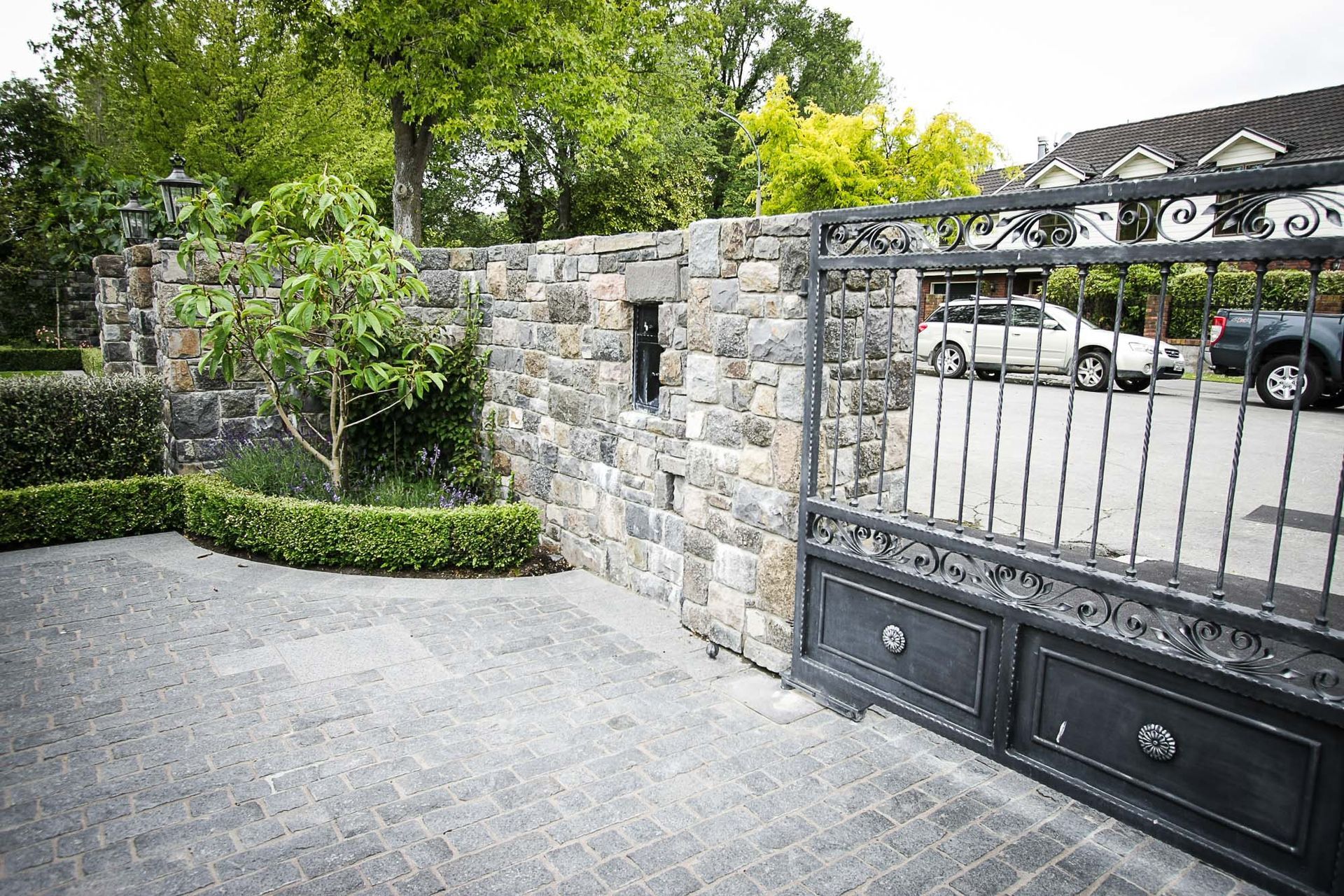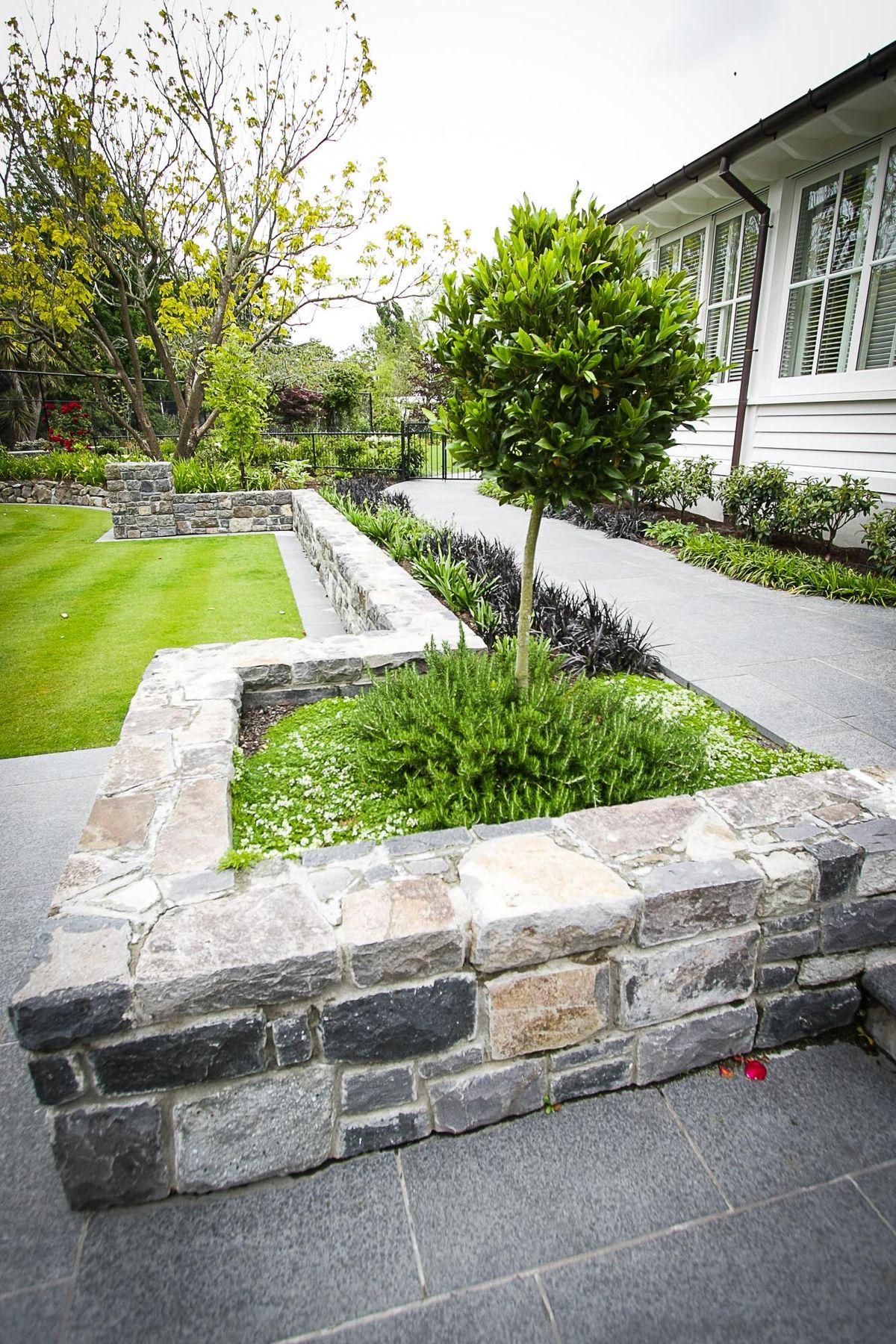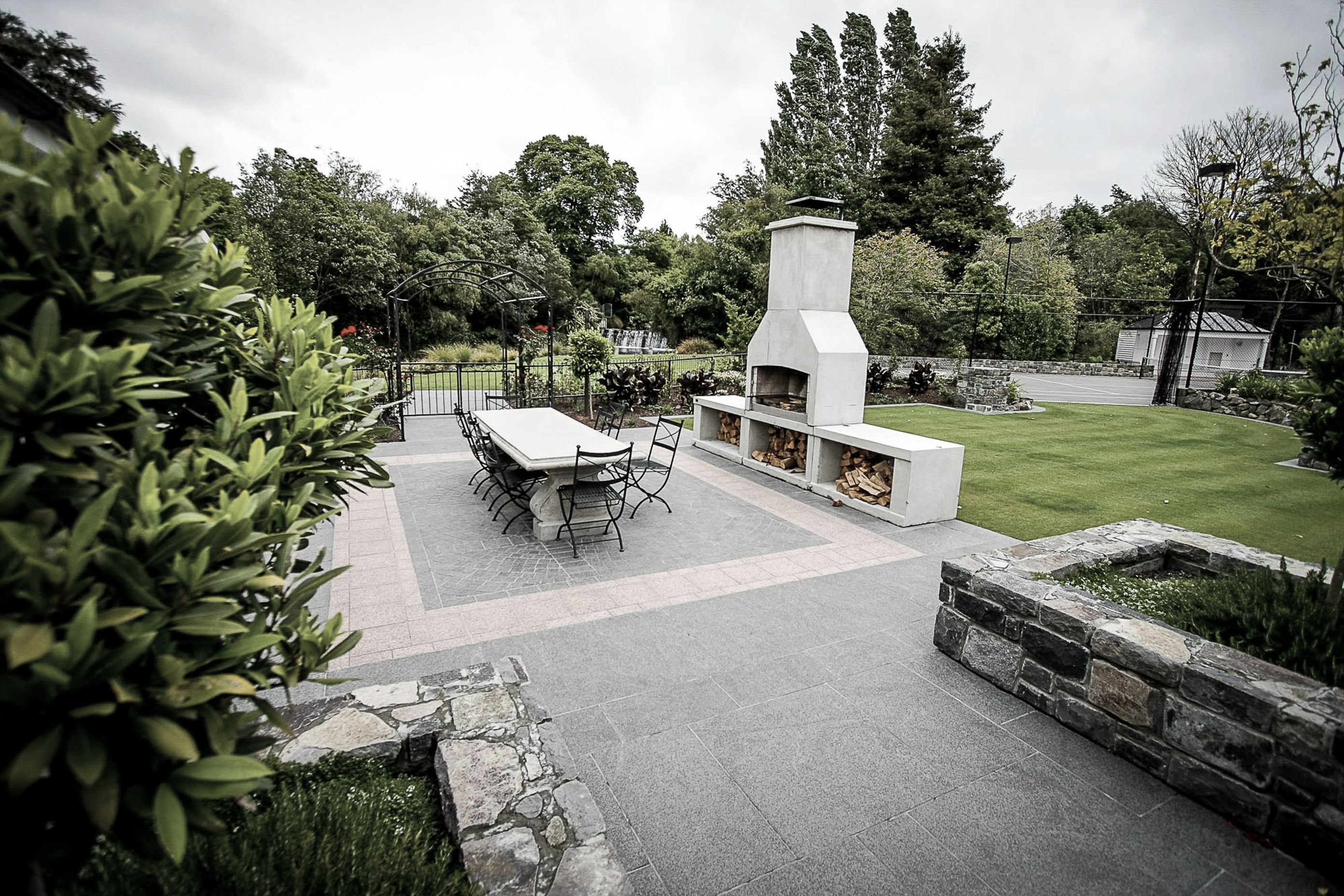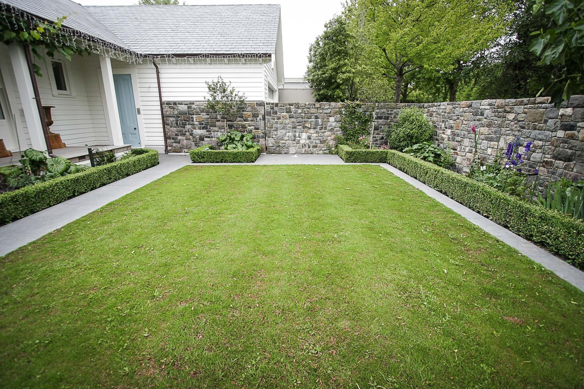 ArchiPro Project Summary - A stunning residential landscape featuring park-like grounds, new courtyards, paths, a tennis court, and pool area, seamlessly integrated with mature trees and a visual connection to the Avon River, enhanced by traditional paving and a mix of native and exotic plants.