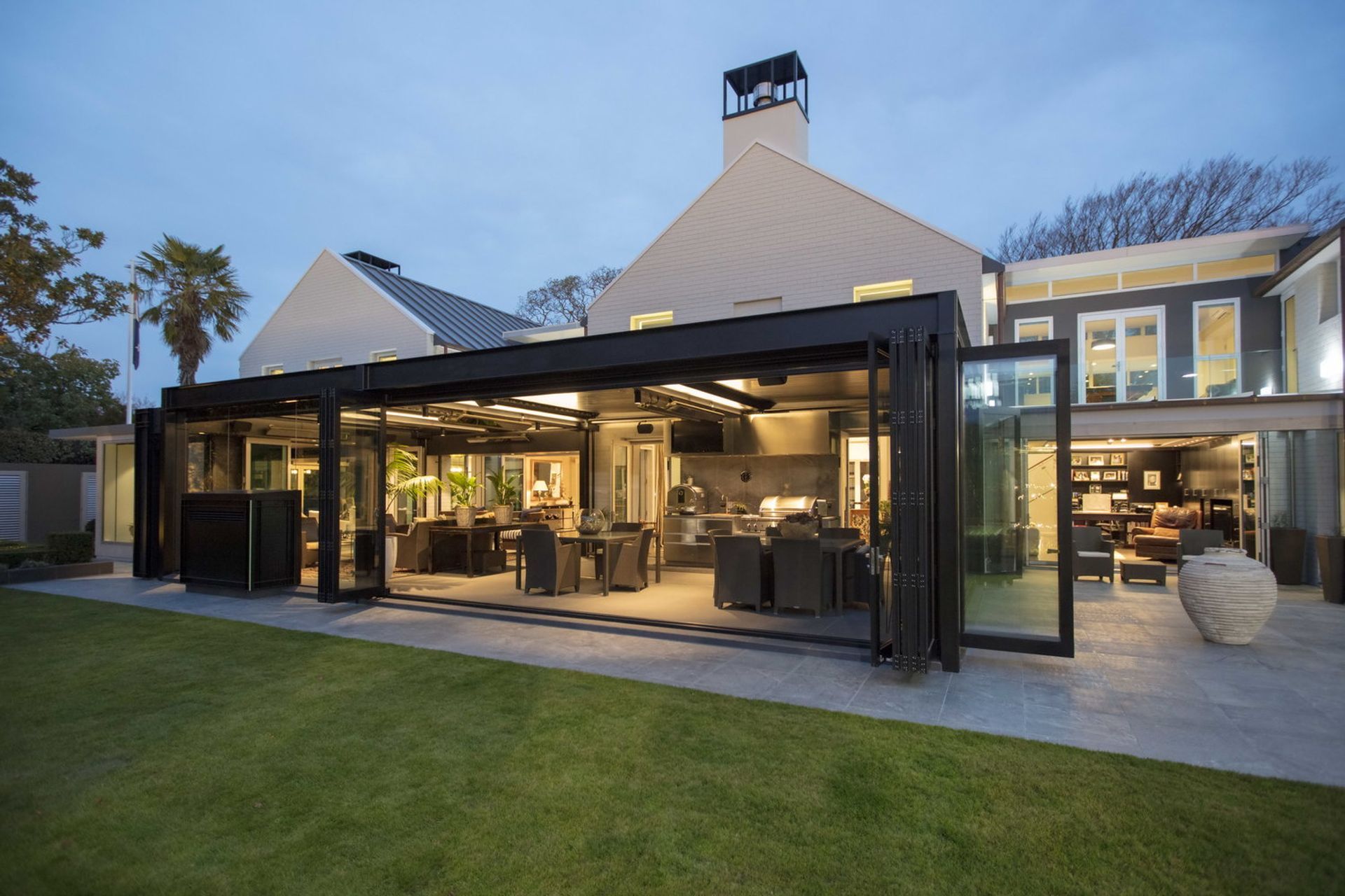 ArchiPro Project Summary - Innovative post-earthquake renovation transforming Fendalton House into interconnected living zones with a bold operable verandah, a highly glazed pool pavilion, and an open-air tennis pavilion, enhancing the relationship between indoor and outdoor spaces.