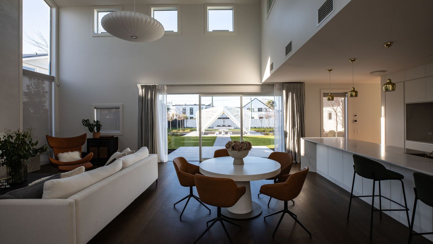ArchiPro Project Summary - A contemporary residence in Fendalton, thoughtfully designed to replace a damaged structure, featuring a winter garden atrium, double-height spaces, and a tea house pavilion that harmonizes with the natural surroundings.