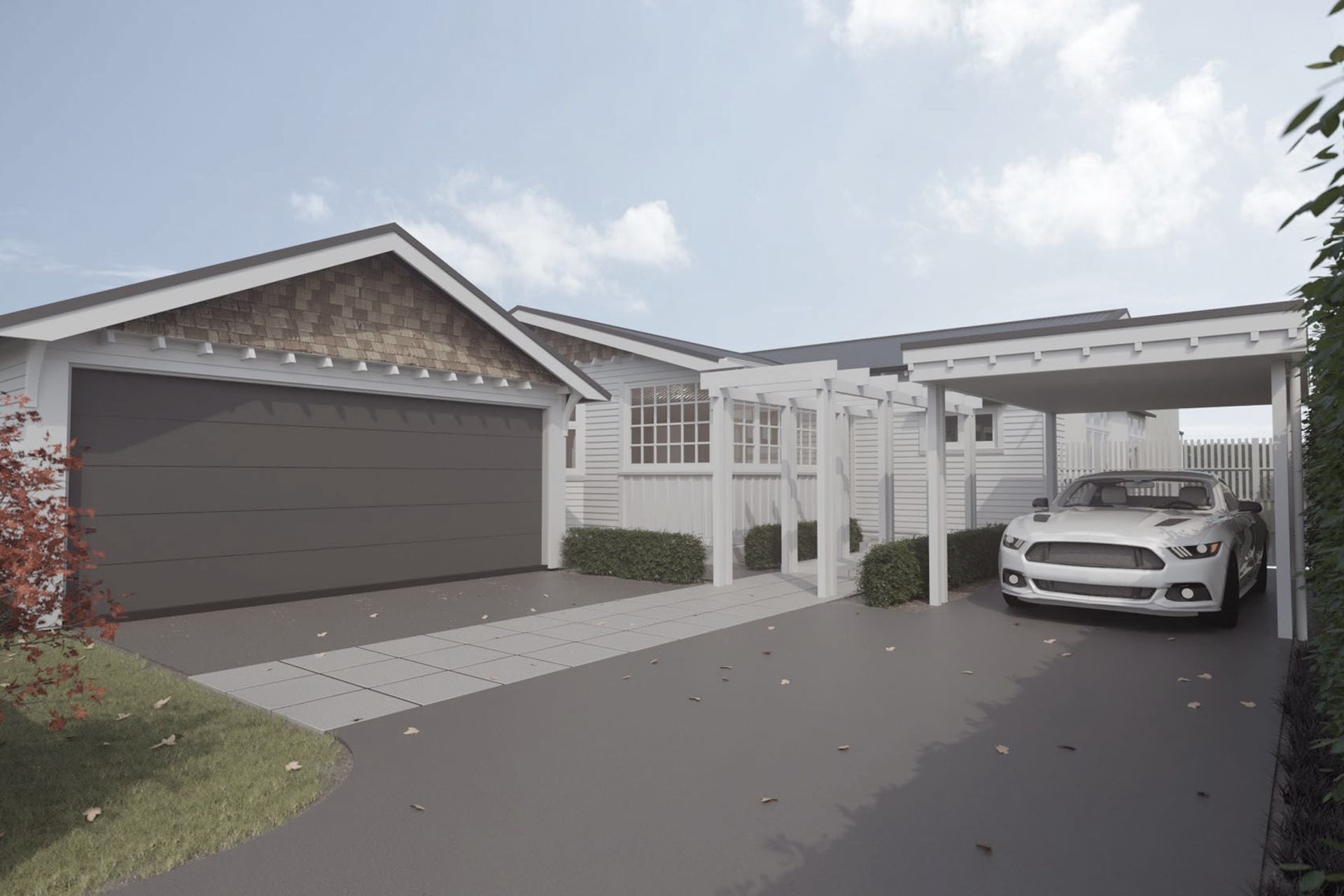 ArchiPro Project Summary - A thoughtfully designed outdoor living space and double garage that enhances the Fendalton family's lifestyle while harmonizing with the existing architecture.