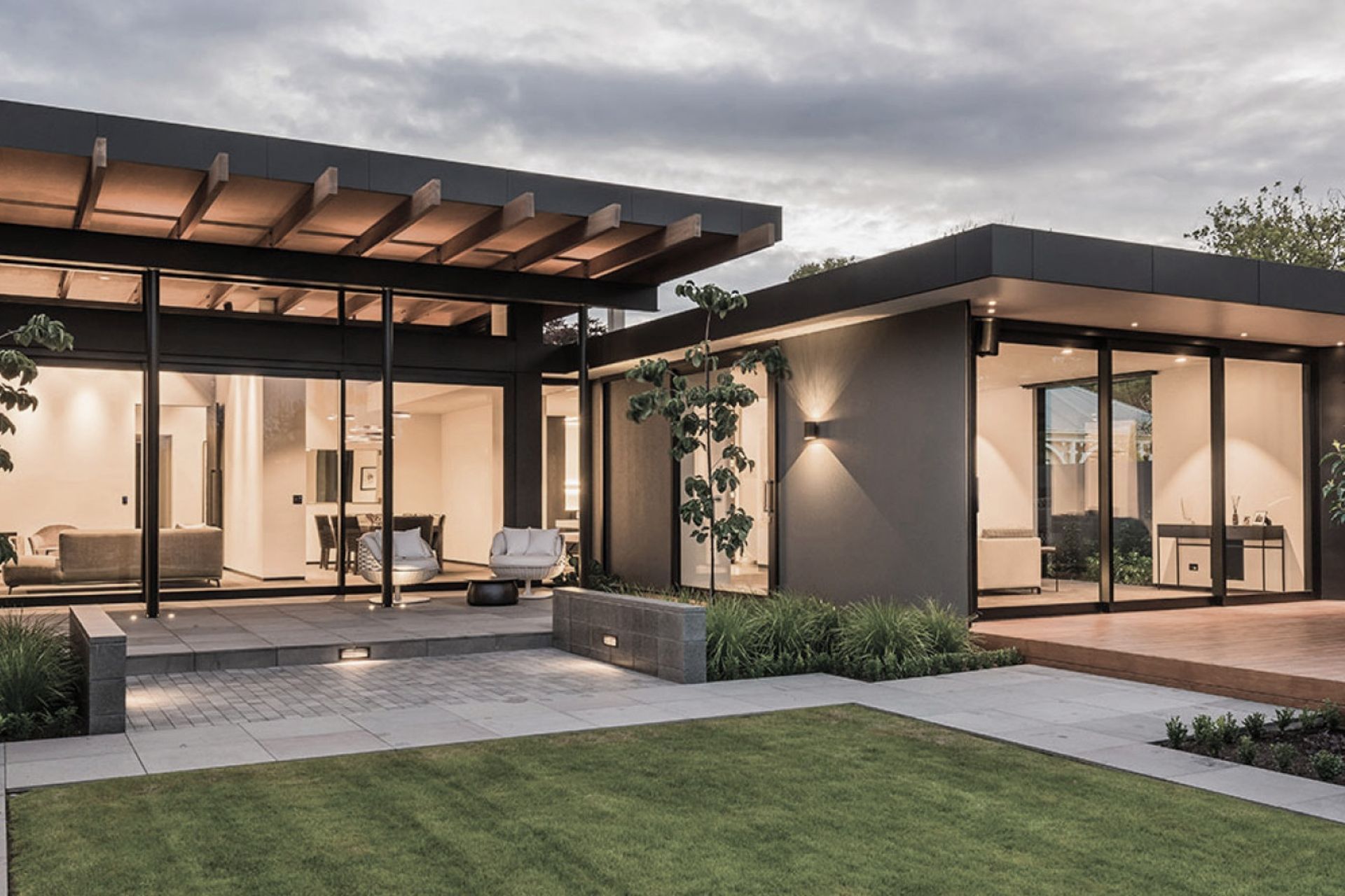 ArchiPro Project Summary - A Gold Award-winning architectural masterpiece in Canterbury, featuring a unique single-level design with three wings, abundant natural light, and a sun-drenched courtyard, crafted by Sheppard & Rout.