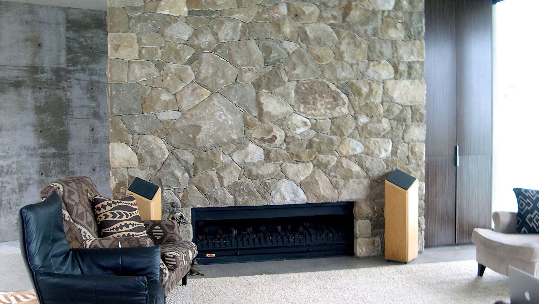 ArchiPro Project Summary - A stunning fireplace project featuring a stone wall, elegant furniture, and ambient lighting, creating a warm and inviting living room atmosphere.