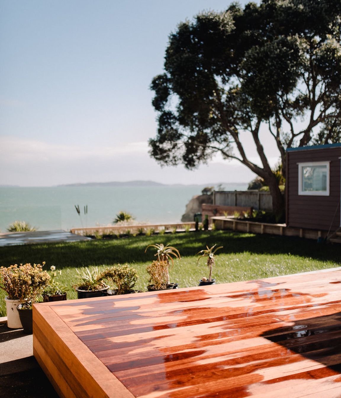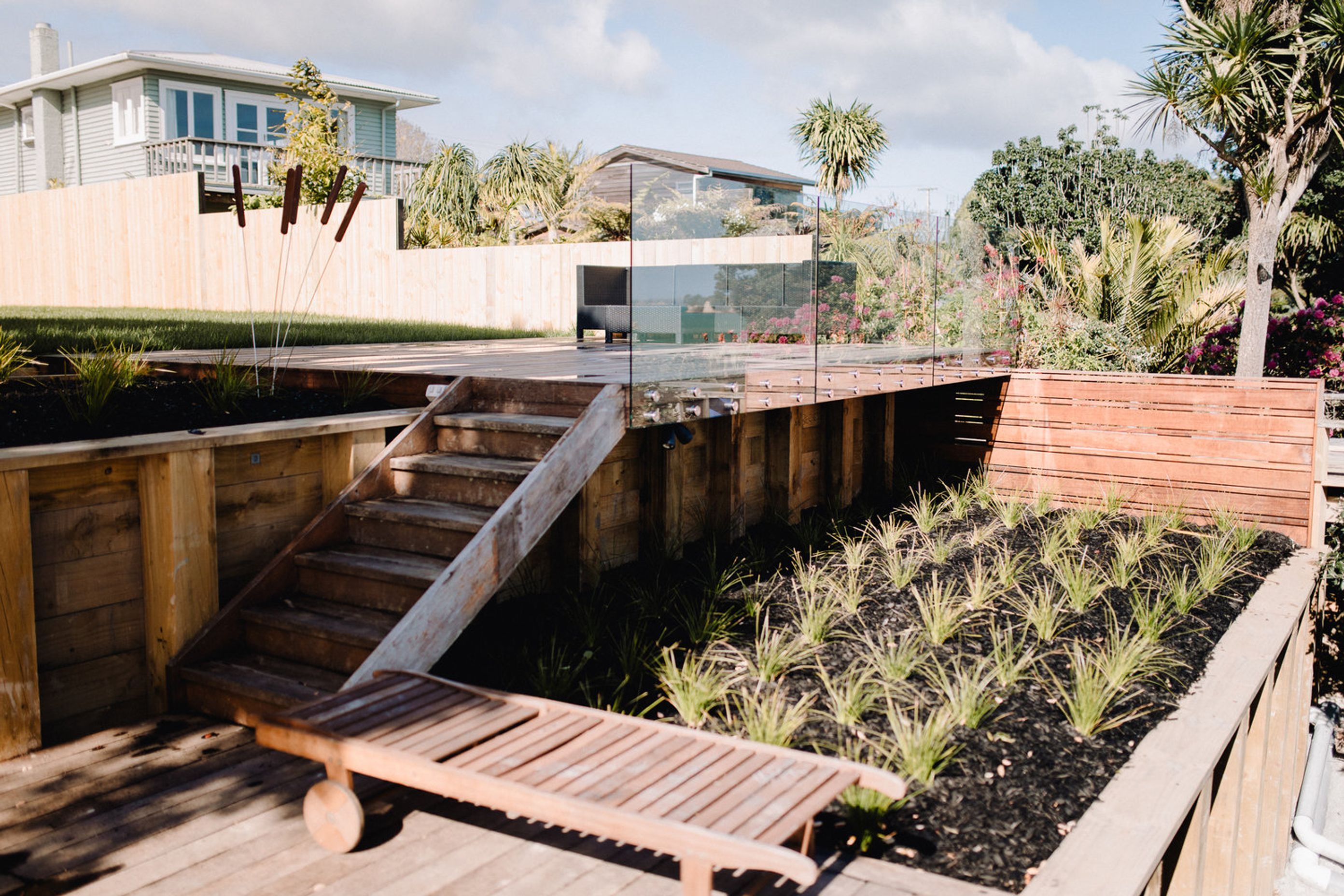 ArchiPro Project Summary - Cliffside renovation in Beachlands featuring stunning outdoor spaces, hardwood decks, a new studio, and updated kitchen and bathrooms, enhancing the experience of sunrise and sunset over the Hauraki Harbour.