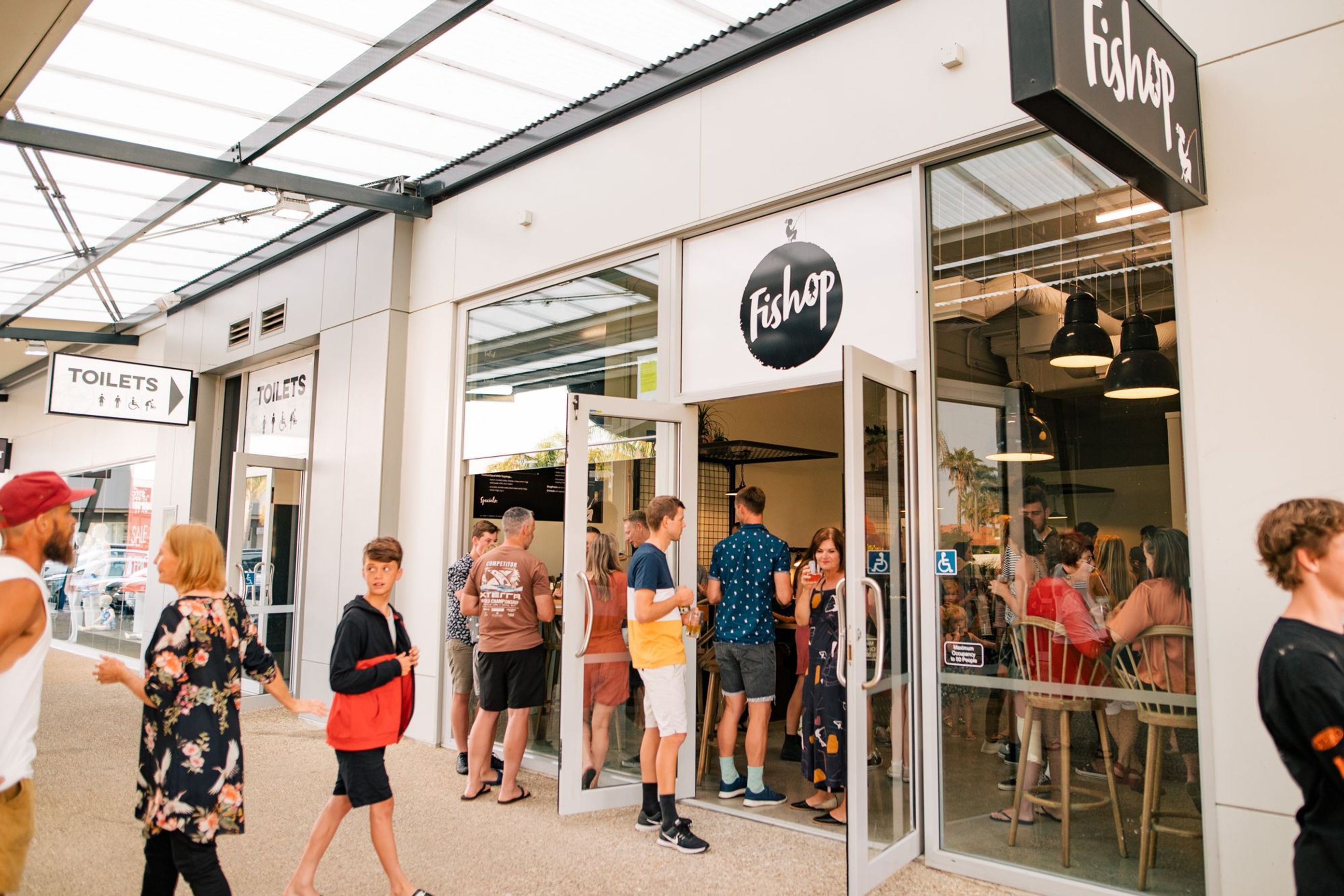 ArchiPro Project Summary - Fishhop Papamoa is a modern seafood market and eatery with a design that complements its coastal surroundings.