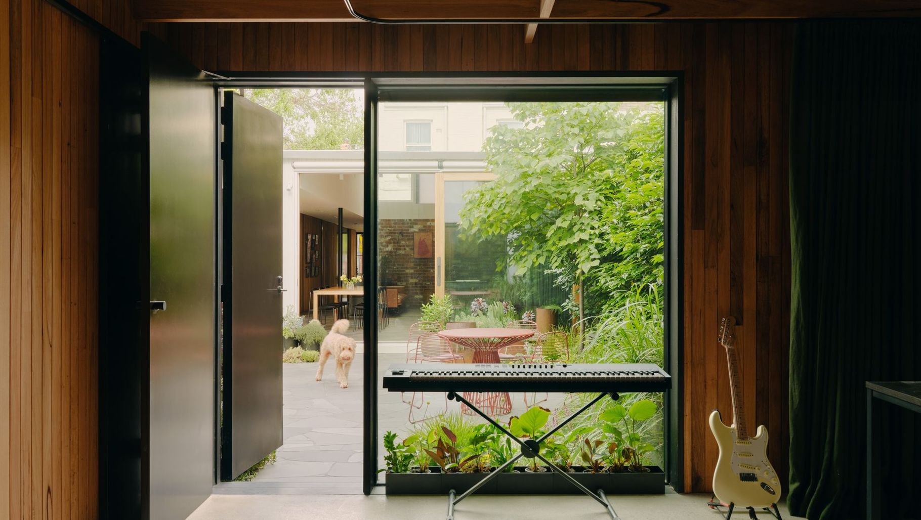 ArchiPro Project Summary - A contemporary dual-purpose studio in Fitzroy, completed in 2021, featuring a soundproof garage adaptable for music or workspace, and an upper level that offers flexible living options with expansive views, integrating seamlessly with the unique property layout.