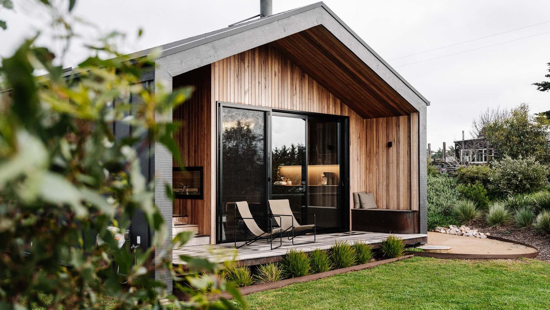 ArchiPro Project Summary - Five Acres: A boutique accommodation project featuring three architecturally designed coastal cabins, expertly crafted for durability and aesthetic appeal in the harsh environment of Phillip Island.