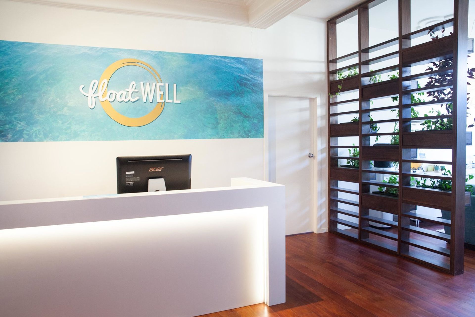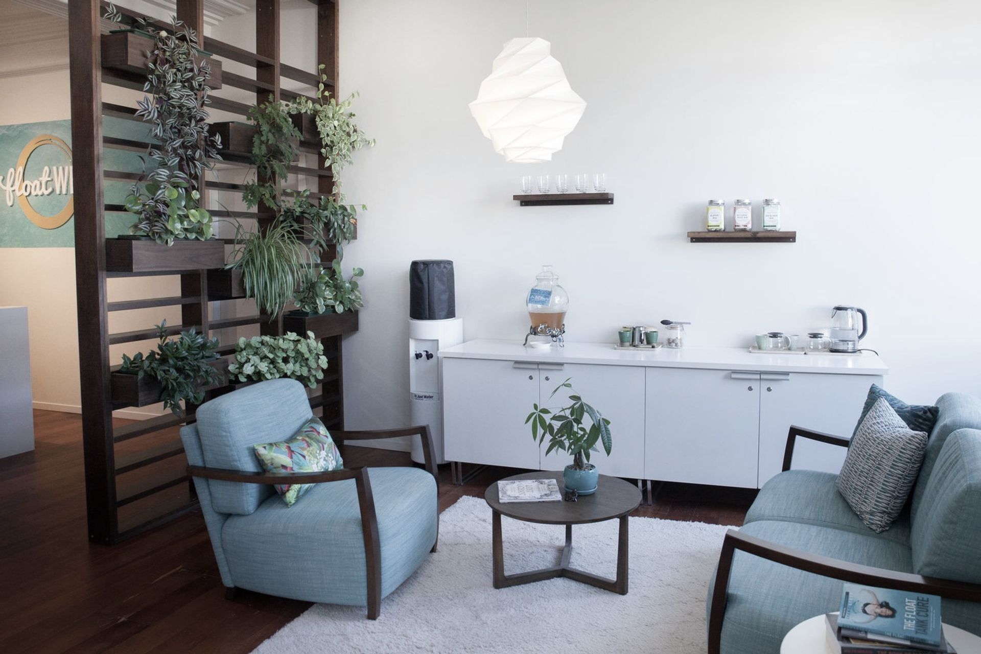 ArchiPro Project Summary - Floatwell: A serene floatation therapy space in the James Smith building, featuring art-deco elements, rich timber flooring, and thoughtfully designed relaxation areas to enhance the experience of tranquility and rejuvenation.