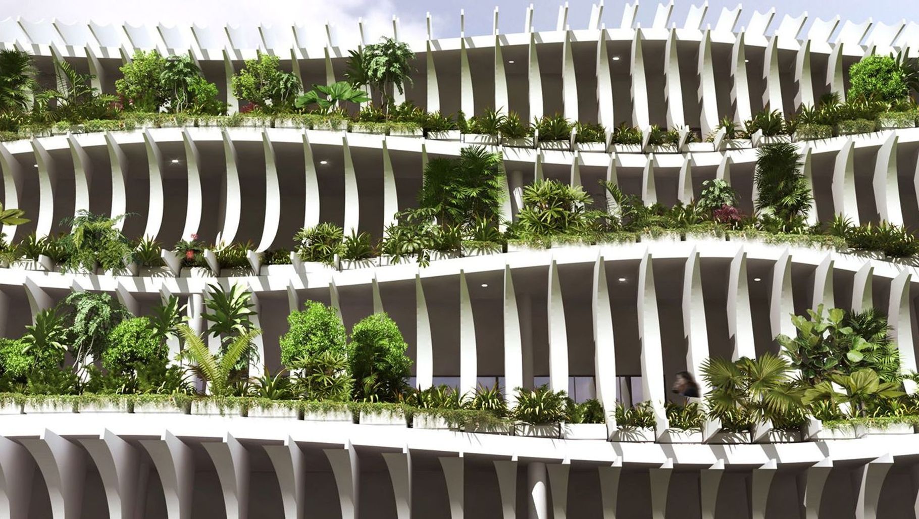 ArchiPro Project Summary - Redesign of Fook Kuin Medical Centre II, incorporating Borneo's climate with innovative shading fins, undulating balconies, and efficient interior layout for improved wayfinding and reduced circulation space.