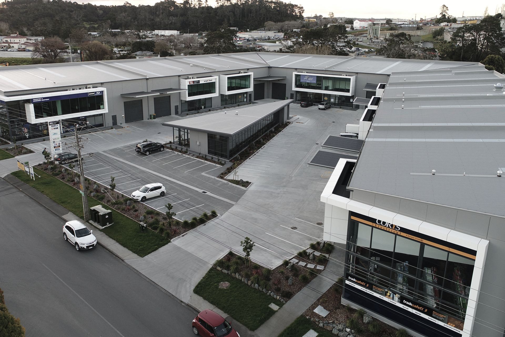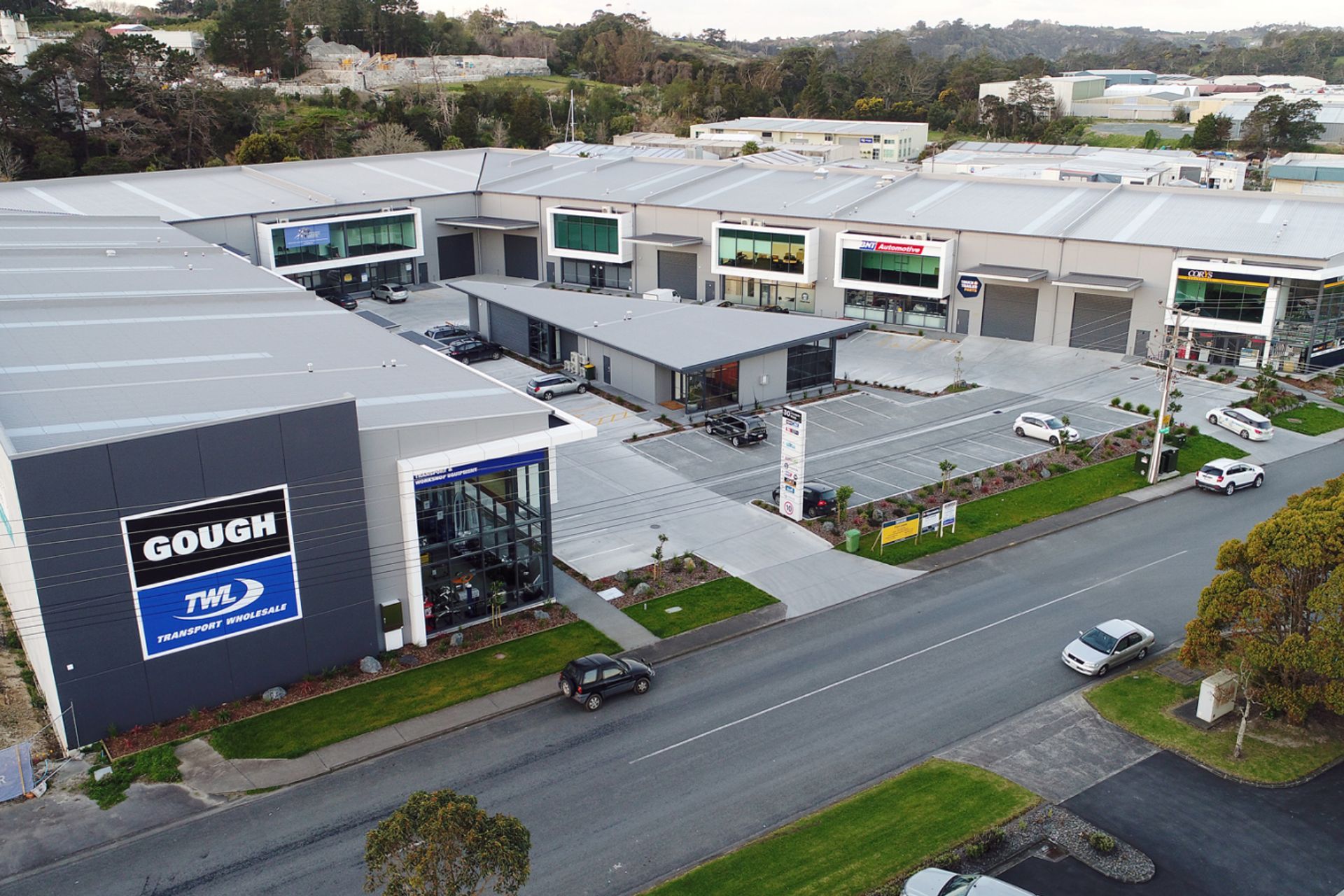 ArchiPro Project Summary - A transformative multi-unit trade retail development in Silverdale, featuring flexible warehouse and mezzanine office spaces tailored for tenants like Gough Group TWL and Corey’s Electrical, with a central office boasting a high-end fit out.