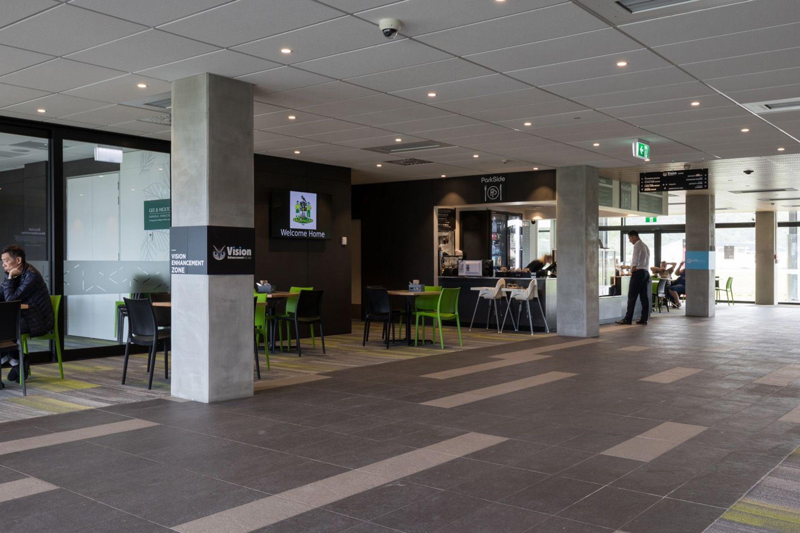 ArchiPro Project Summary - The Ricoh Sports Centre at Fraser Park Sportsville unites multiple sporting groups in a versatile facility, fostering community engagement and sustainability through shared resources and innovative design.