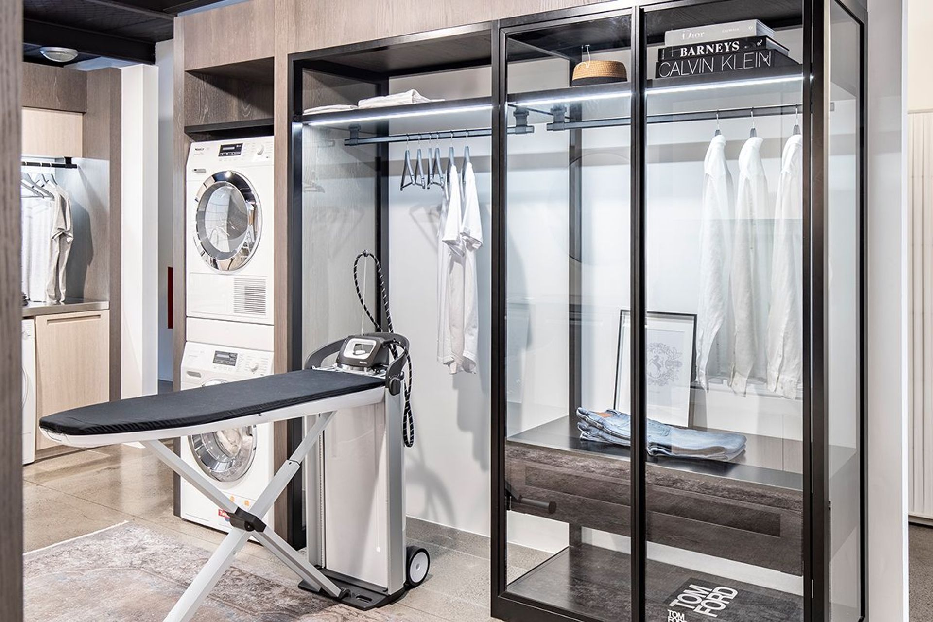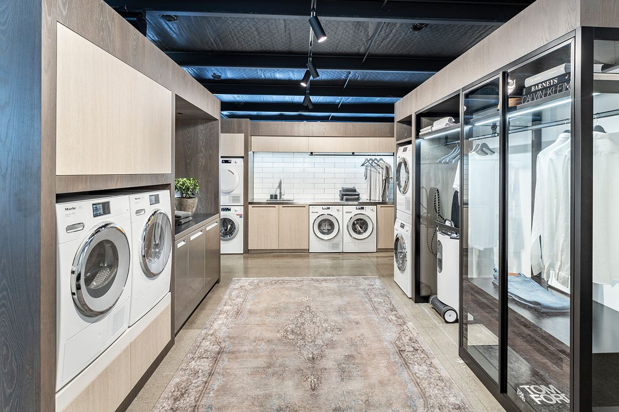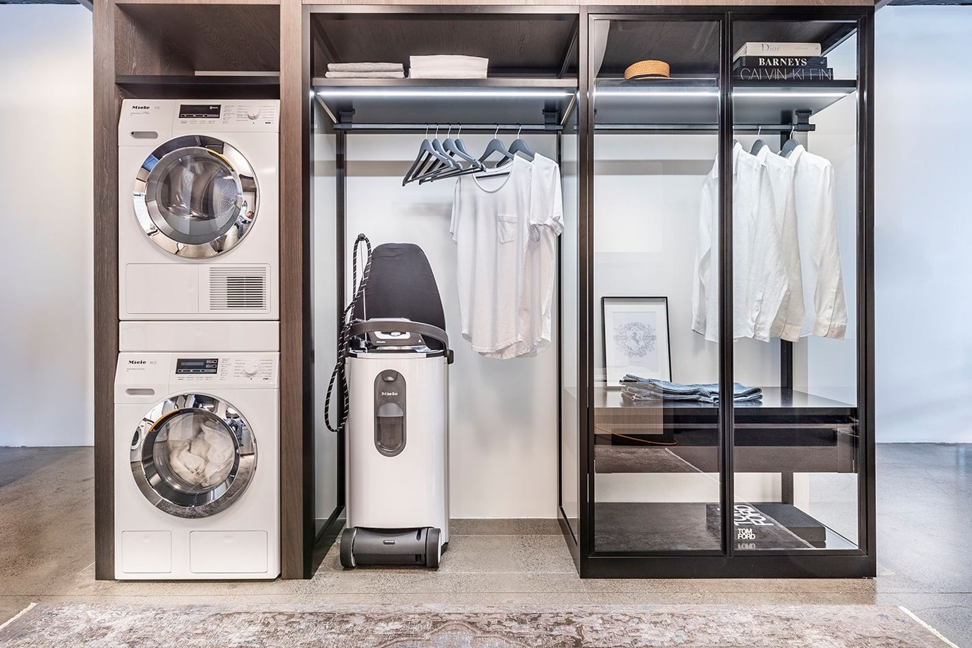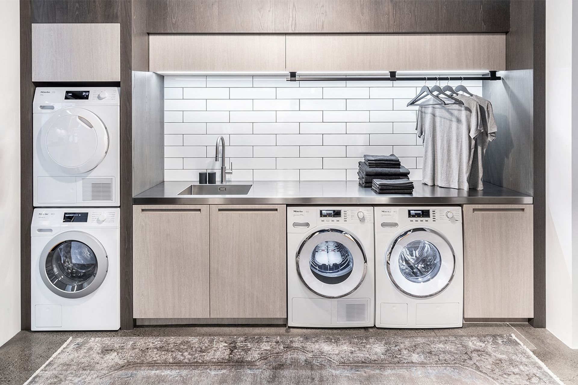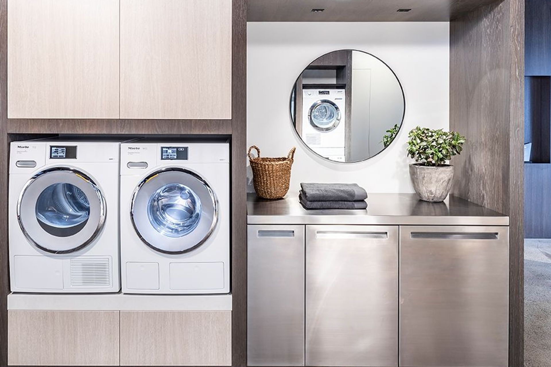 ArchiPro Project Summary - A luxurious laundry fit-out designed by AVÉORA for Miele at Kouzina Appliances, combining practicality with style to enhance the laundry experience.