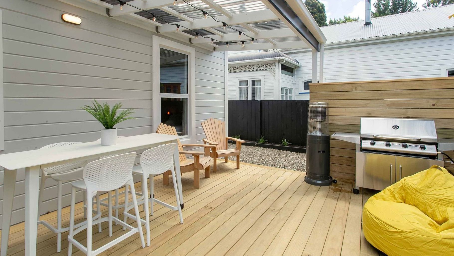 ArchiPro Project Summary - Comprehensive renovation of a 1914 wooden villa, enhancing its character while updating interiors and exteriors to meet modern living standards and Healthy Homes Standards, featuring custom cabinetry, open-plan living, and a beautifully landscaped outdoor space.