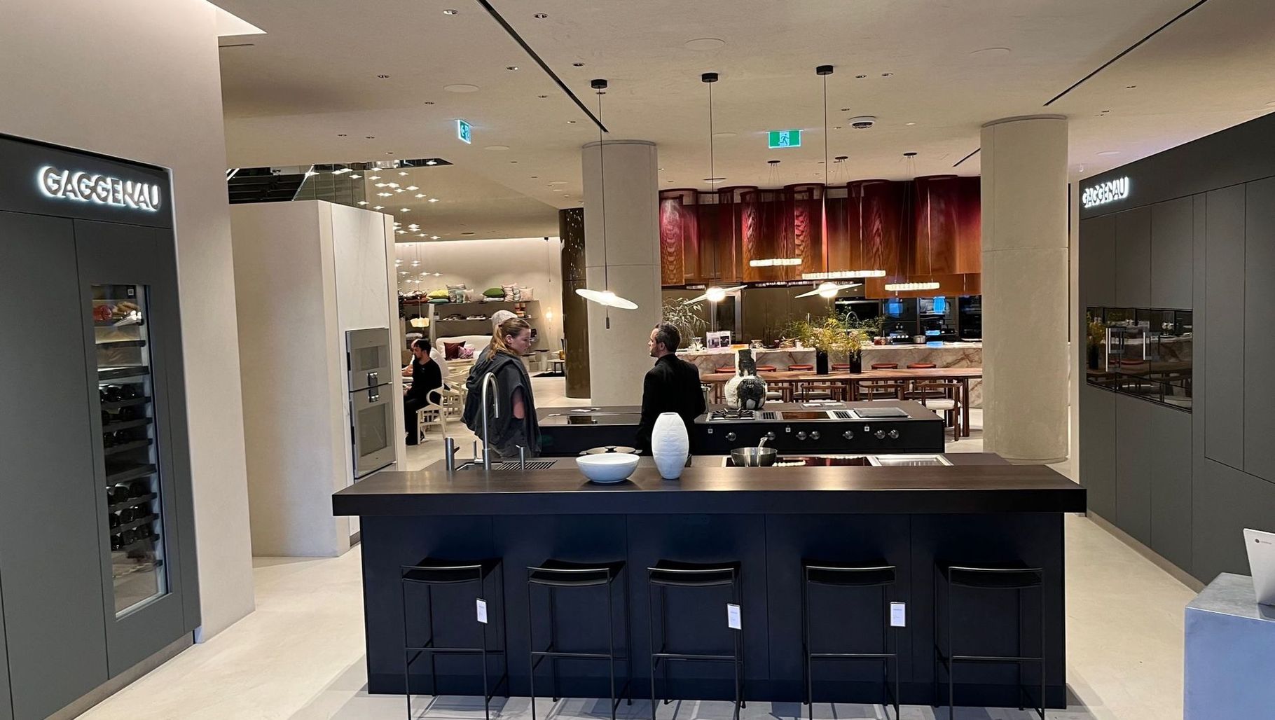 ArchiPro Project Summary - Gaggenau Display at Winnings Stores features modern kitchen appliance displays utilizing Fenix Anti-fingerprint Nano Technology in Grigio Bromo, showcased in Winnings retail showrooms located in Brookvale and Dank St, Waterloo. Shop fitting by Infocus Design.