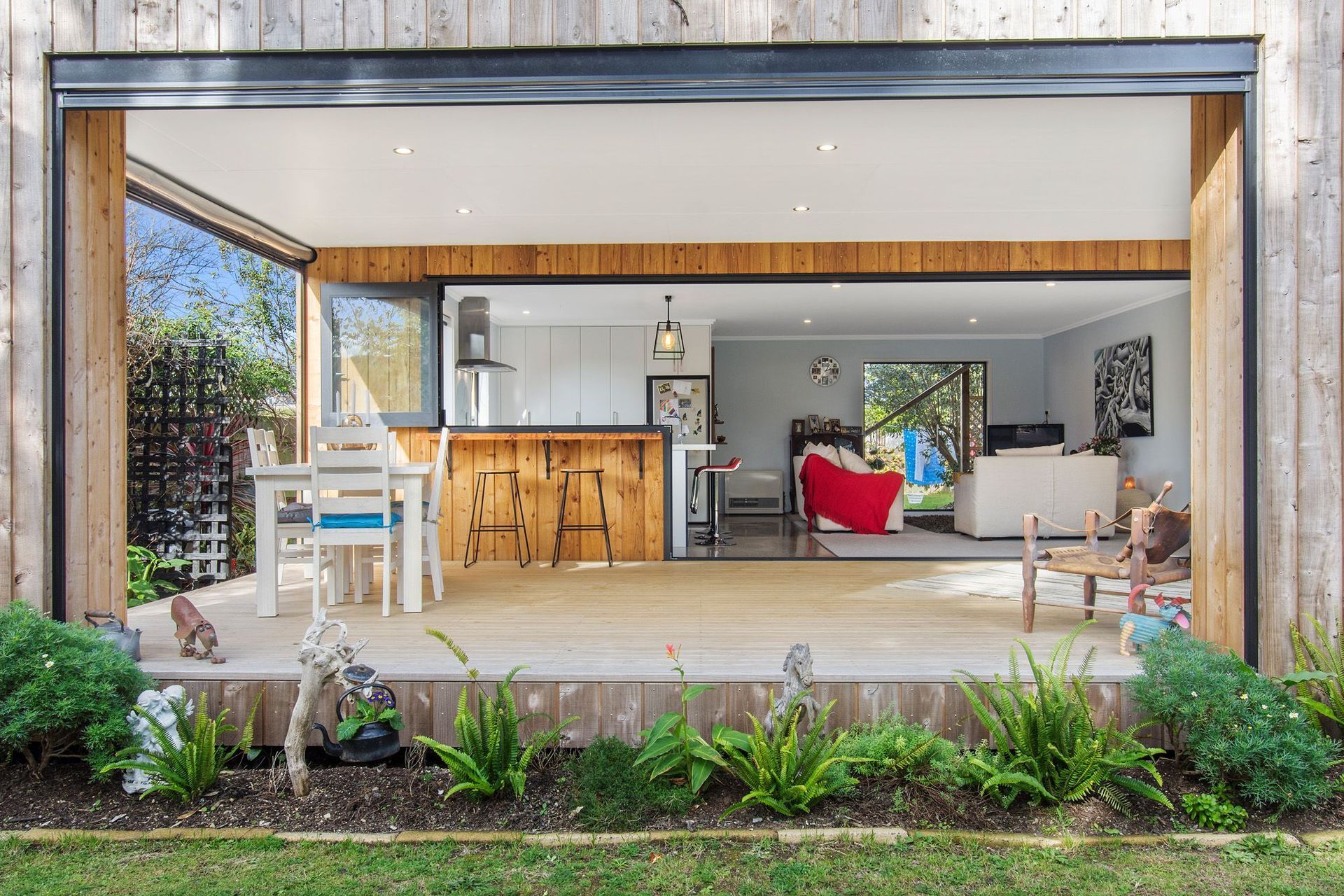 ArchiPro Project Summary - Thoughtfully renovated Bach featuring three new bedrooms, two bathrooms, and an open-plan living space that seamlessly connects indoor and outdoor areas, all while maximizing estuary views and enhancing the client's relaxed outdoor lifestyle.