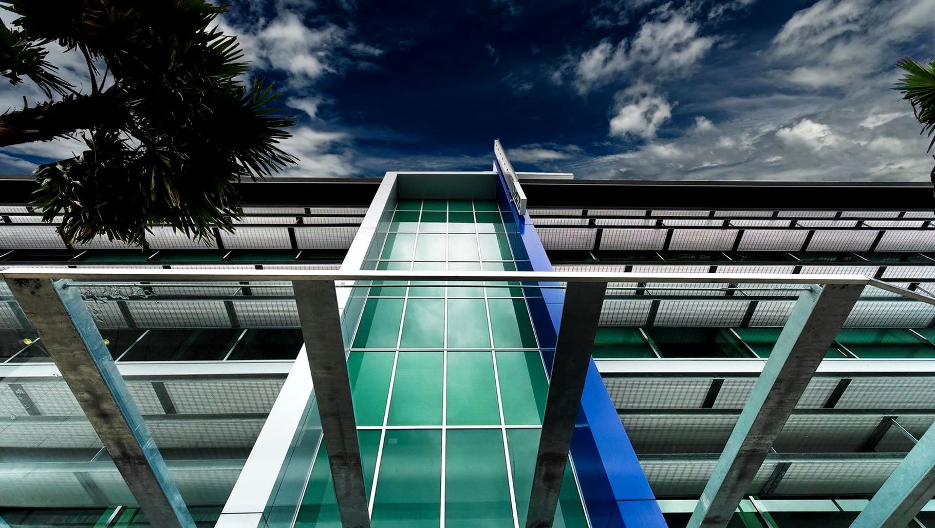 ArchiPro Project Summary - A four-storey commercial office building in Cairns CBD featuring open plan layouts, natural light optimization, and a striking lobby with local marble cladding and a blue beacon, including fit-outs for GHD Consulting Engineers and the Department of Immigration.
