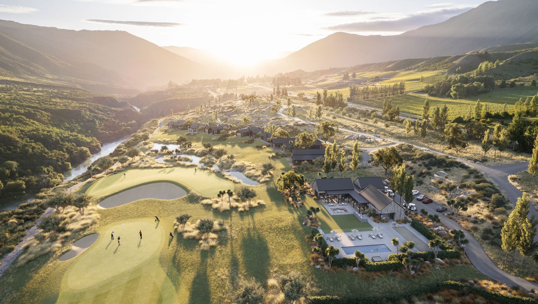 The Gibbston Valley Resort is nestled in the heart of Central Otago wine country and is Queenstown's newest resort development. Over 1000 acres of land to enjoy, a 9-hole Golf Course, Clubhouse and benefits across all Gibbston Valley products and facilities this comprehensively planned resort offers exceptional lifestyle value. Thoughtfully designed with large green spaces, majestic vistas, vineyards, olives groves and consideration to its environment this is a resort that is designed for multiple generations.