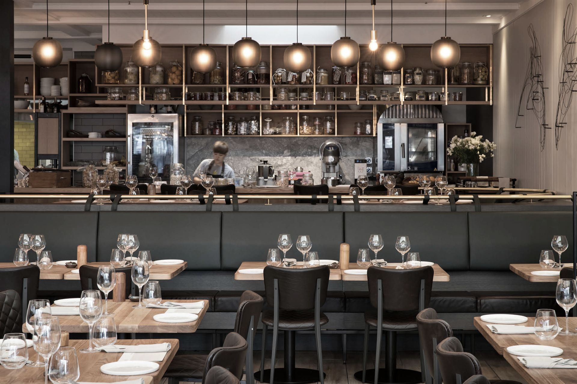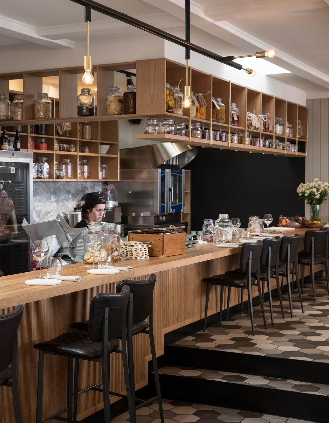 ArchiPro Project Summary - Giraffe by Simon Gault: A unique dining experience that merges the kitchen and restaurant, allowing guests to witness culinary artistry firsthand, featuring an innovative open layout with a pantry, kitchen, and bespoke dining areas.
