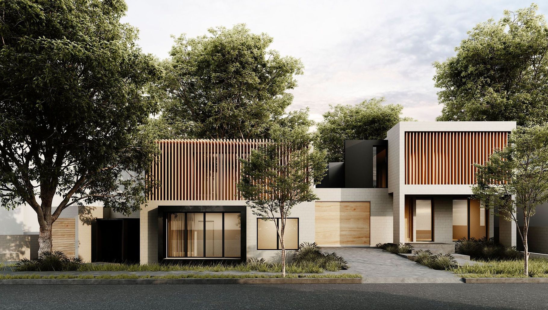 ArchiPro Project Summary - A thoughtfully designed dual occupancy in Gladesville, featuring a harmonious blend of timber, brick, and glass, maximizing site potential with an engaging courtyard that transforms underutilized space.