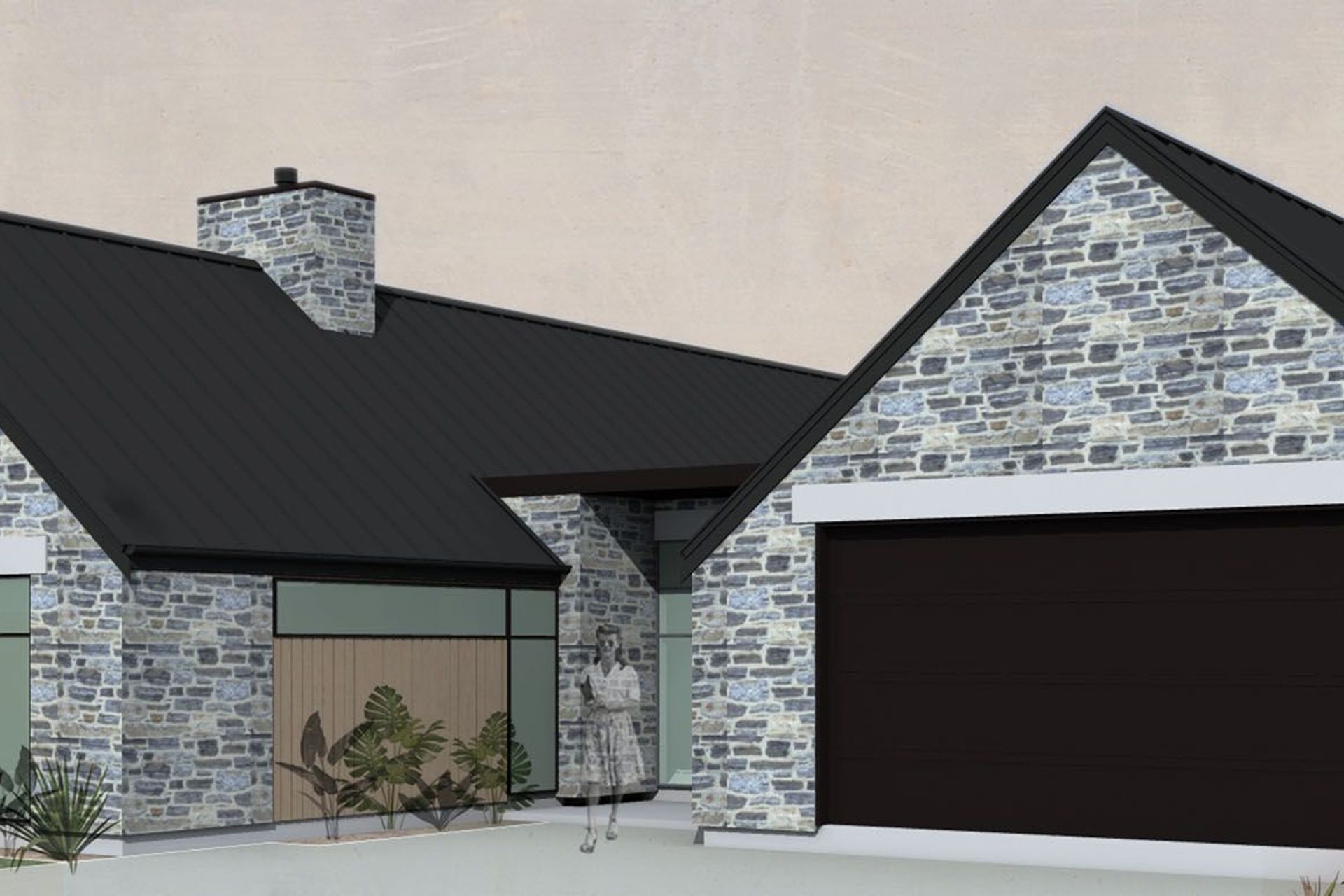 ArchiPro Project Summary - A contemporary transformation of a 1970s residence, featuring an 'H' shape design that enhances space and aesthetics while preserving existing rooflines, complemented by a striking entrance and a blend of modern materials.