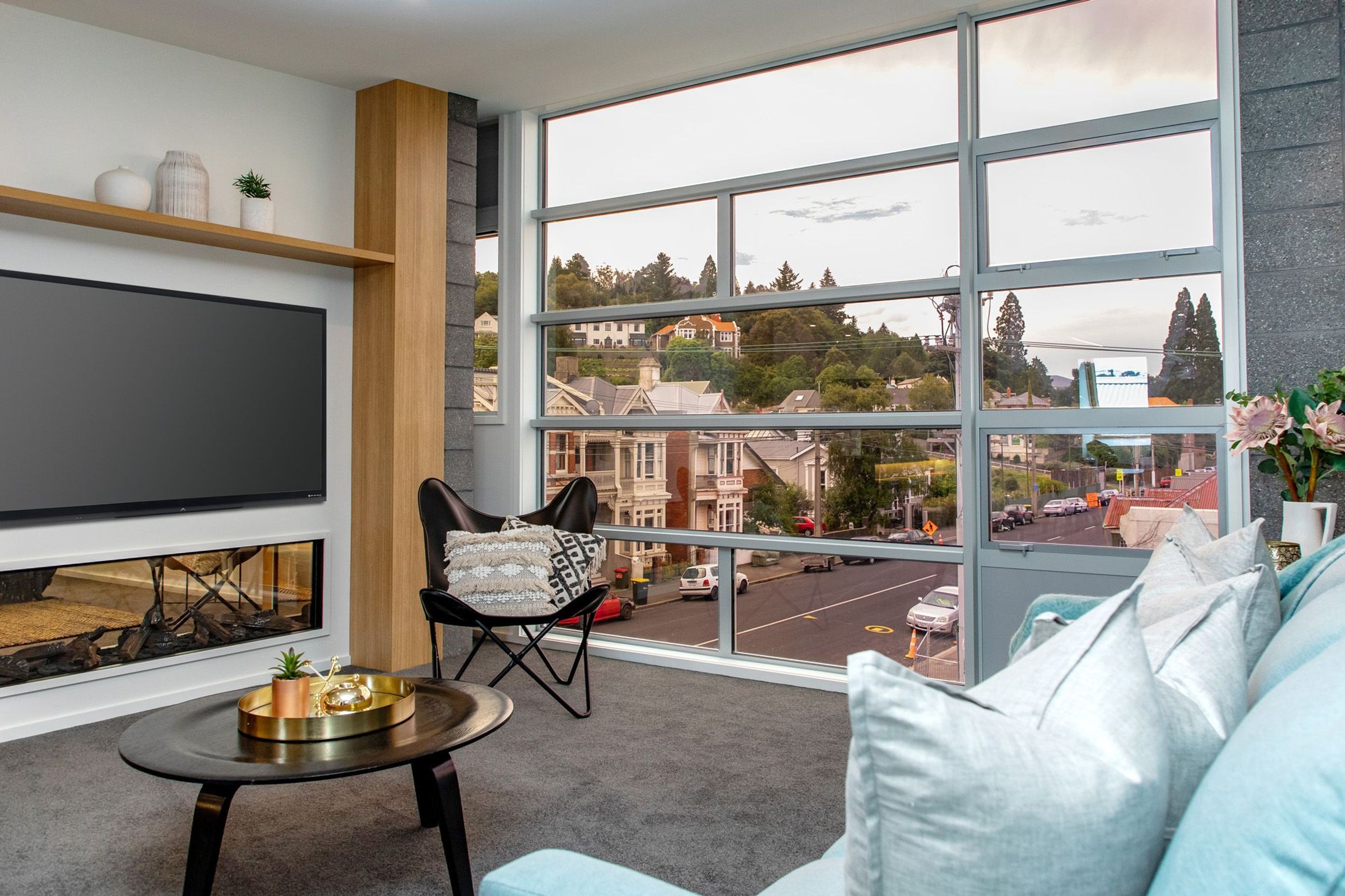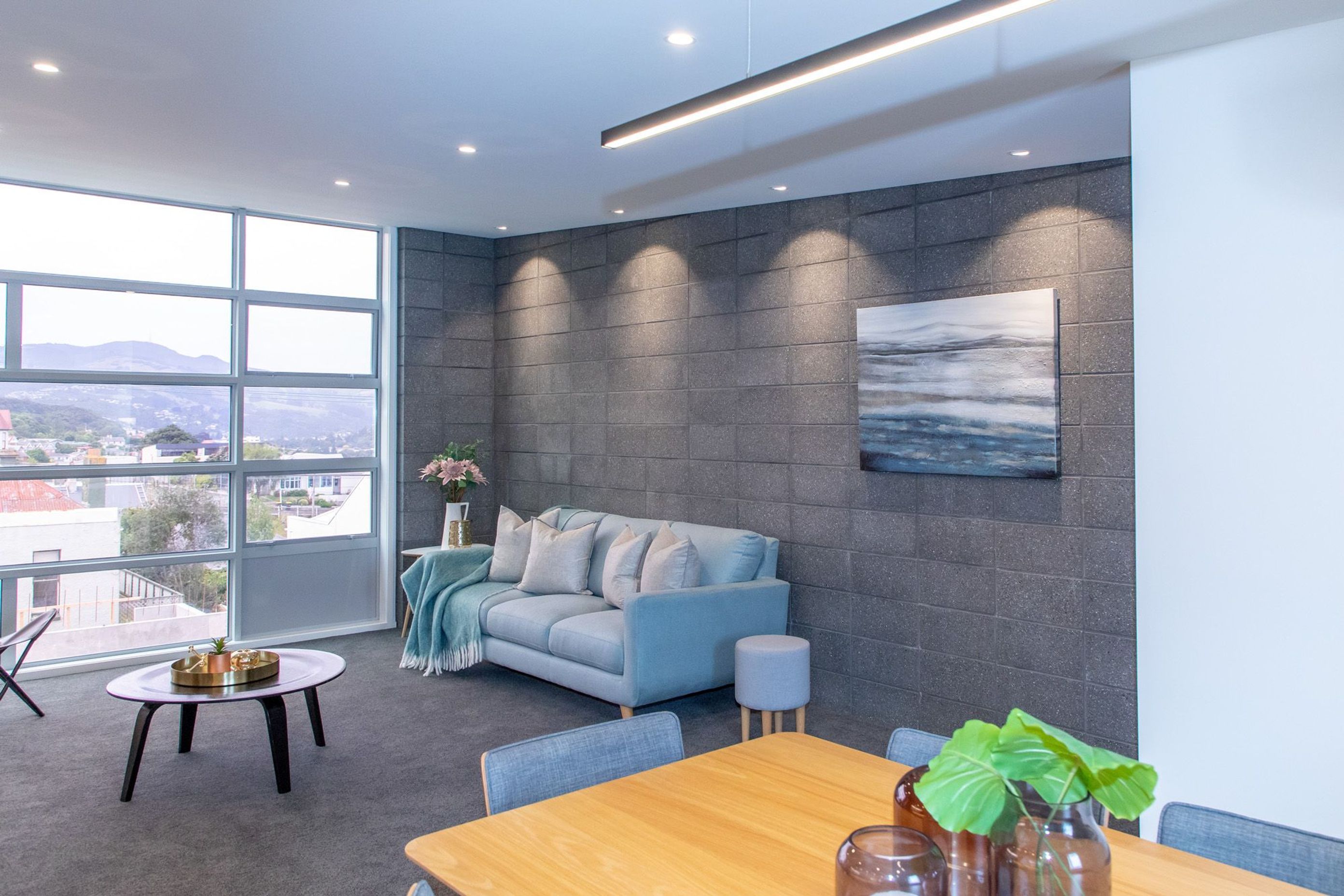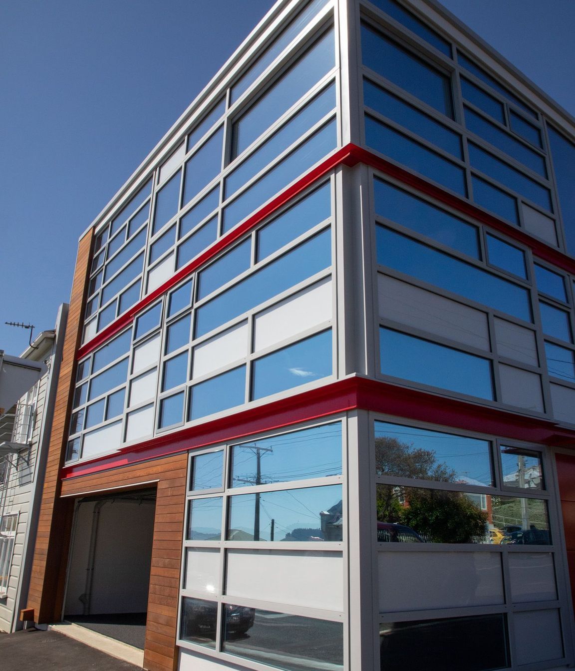 ArchiPro Project Summary - Three-storey townhouse in Dunedin featuring a striking combination of concrete, steel, and mirrored glass, designed to enhance spatial perception and adapt to its surroundings, with stunning views of the city and Otago Harbour.