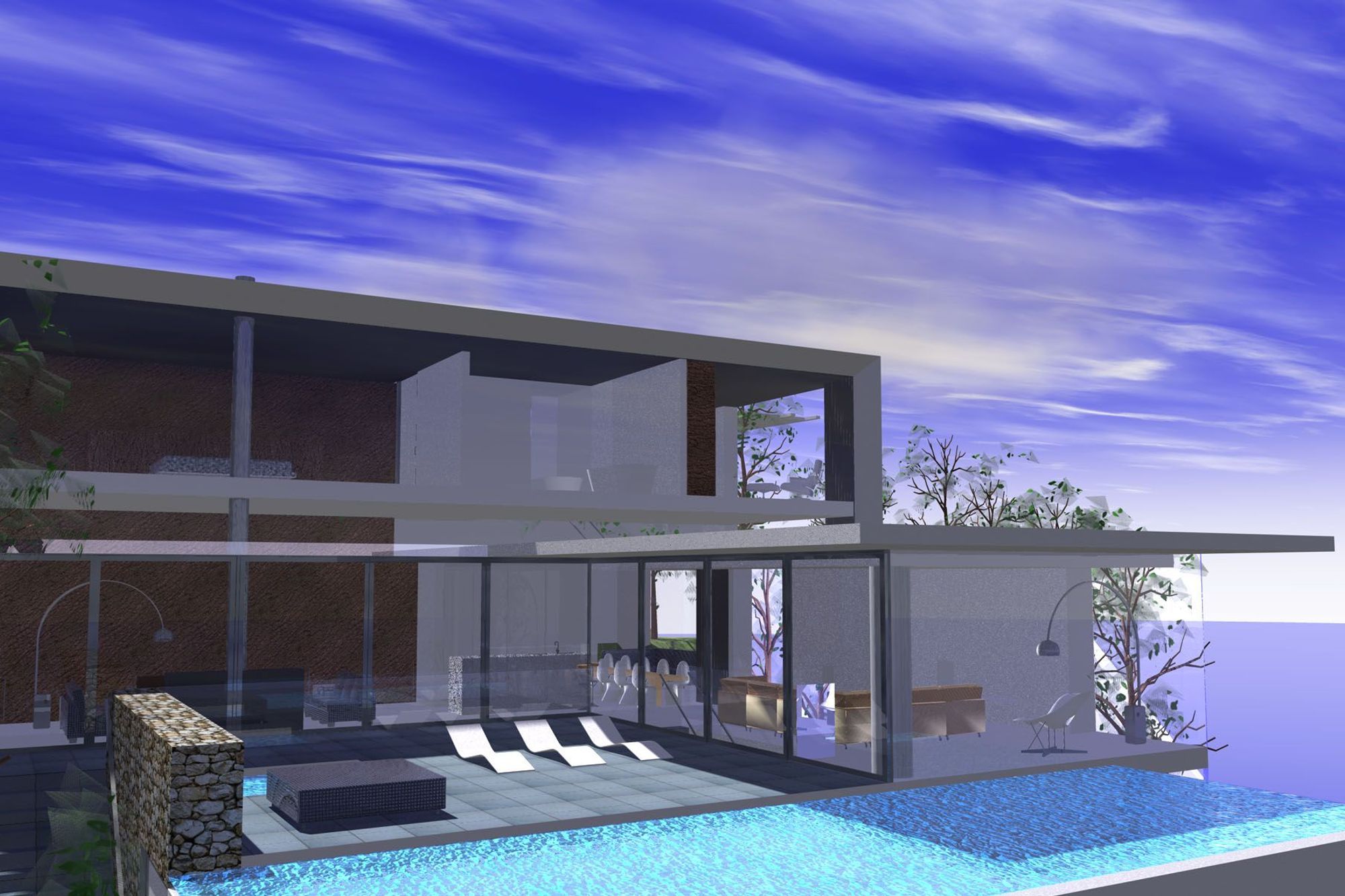 ArchiPro Project Summary - Glasson House exemplifies modern Brutalist architecture with expansive glass elements and a striking balcony, blending indoor and outdoor living.