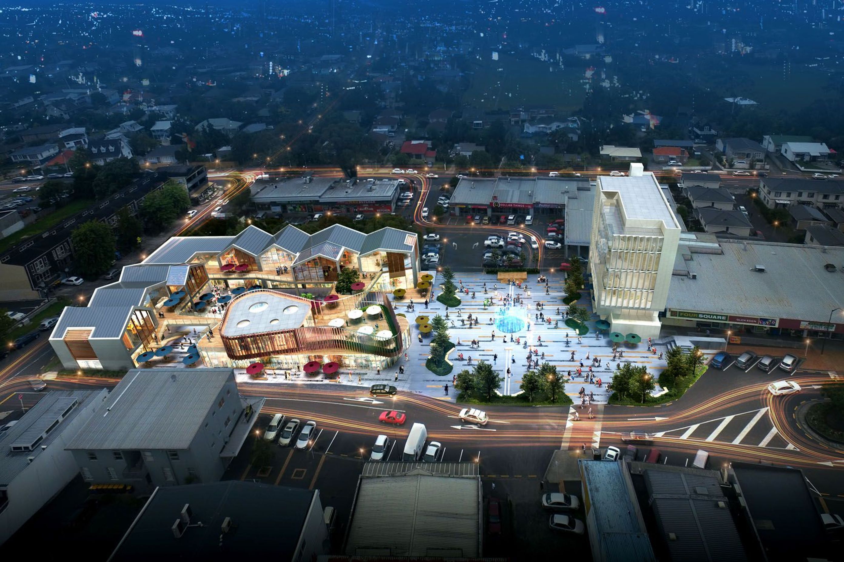 ArchiPro Project Summary - Two-level commercial building in Glen Eden featuring 22 shops and 340m of shop frontage, designed with a total gross floor area of 2,331 sqm on a 2,233 sqm site, currently in the concept design phase.