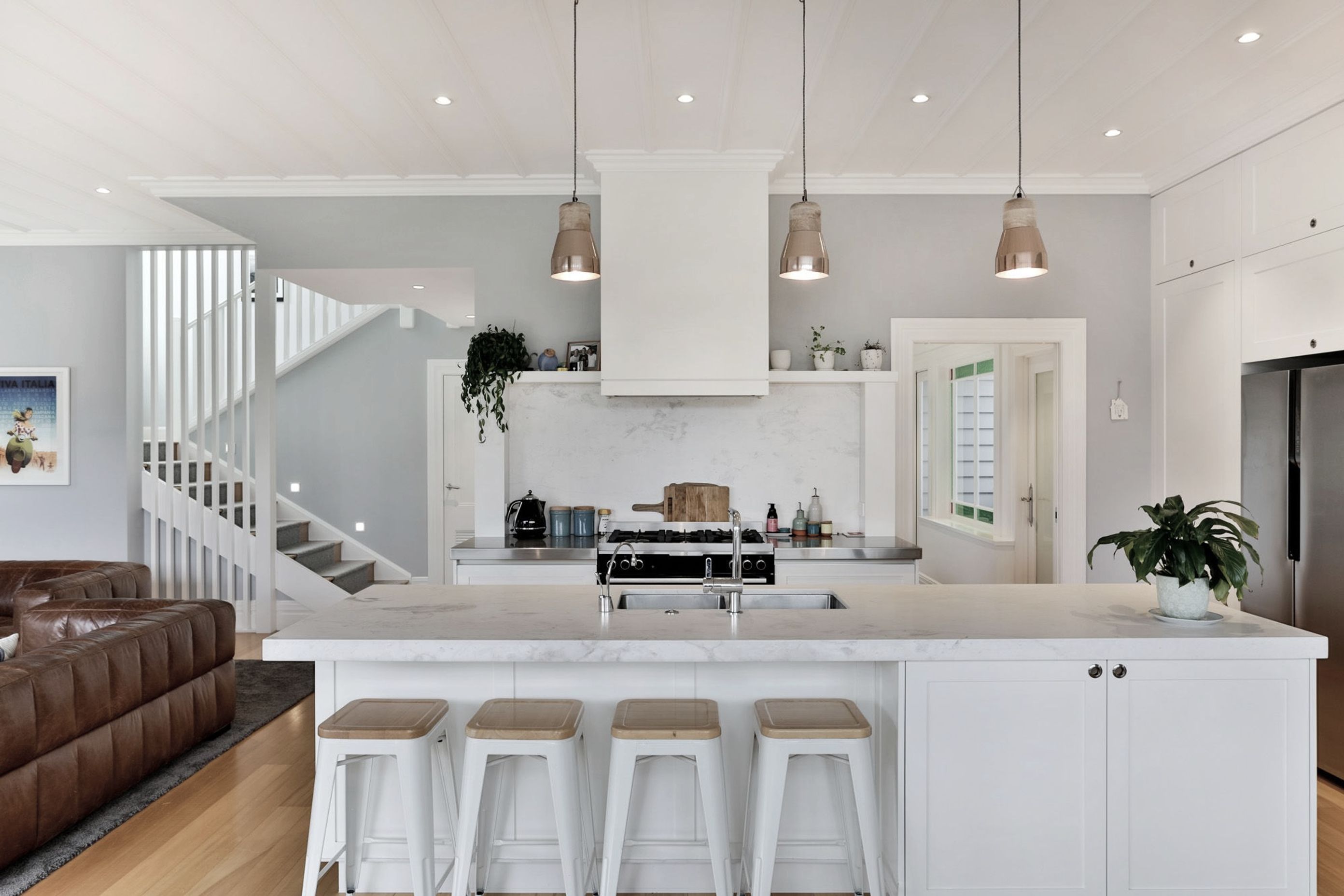 ArchiPro Project Summary - Two-storeyed villa in Stanley Point featuring a spacious open plan kitchen, dining, and living area with seamless indoor/outdoor flow to a sunny, private backyard.