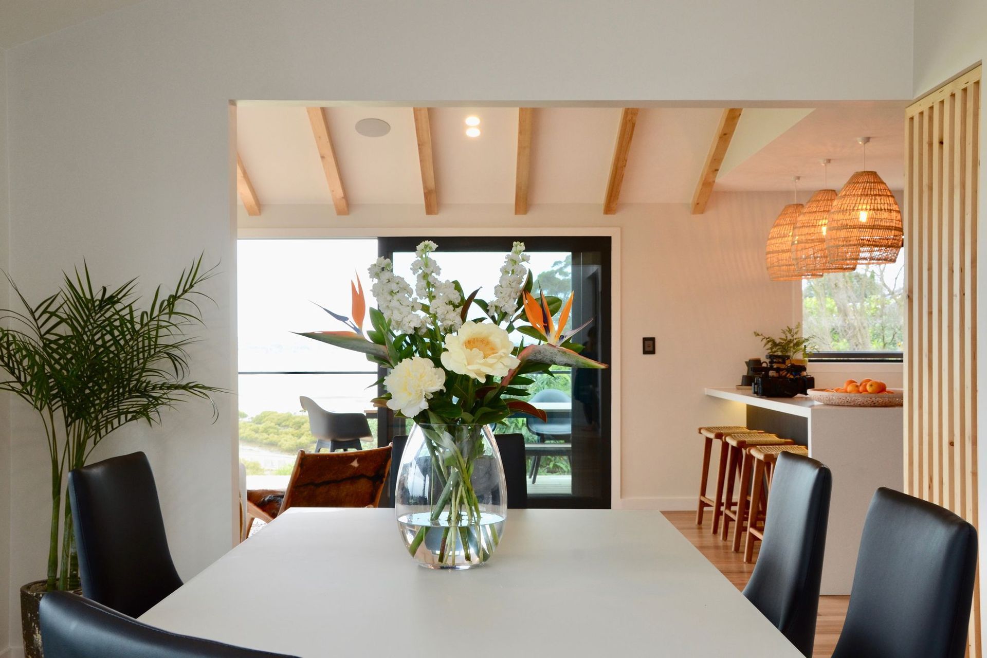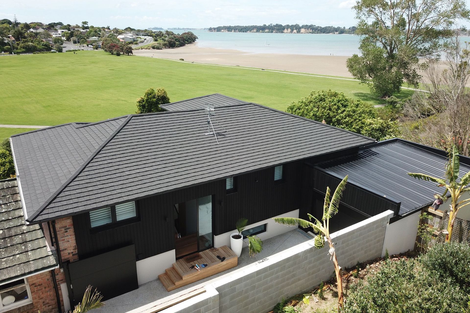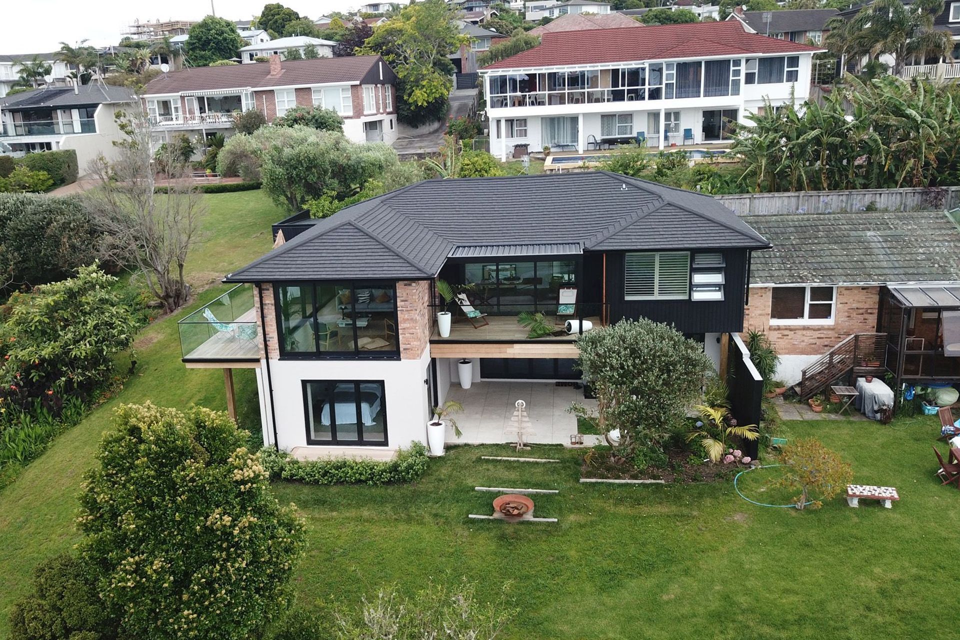 ArchiPro Project Summary - Comprehensive renovation of a 1950s seaside home in Glendowie, featuring structural enhancements, layout reconfiguration, and restoration of original cladding, showcased on TV3's 'The Ultimate Reno'.