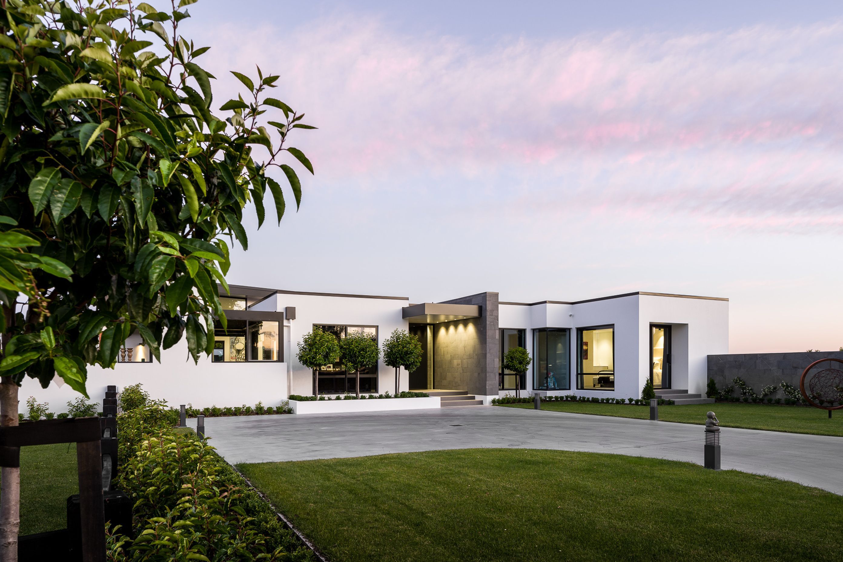 ArchiPro Project Summary - A harmonious blend of private and social spaces, featuring an open-plan layout, state-of-the-art kitchen, swimming pool, and outdoor living areas, all enhanced by Timaru Bluestone and sleek white plaster cladding.