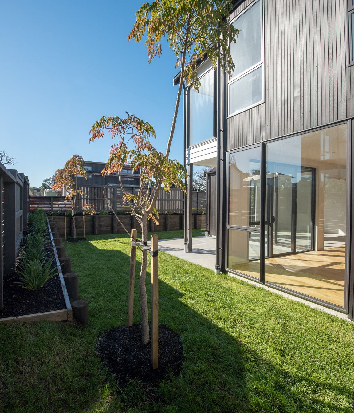 ArchiPro Project Summary - Redevelopment of 156 properties in Glen Innes to create 260 new homes, including 78 for Housing New Zealand, 40 for community providers, and private sales, with a focus on cohesive street planting and user-friendly community gardens.