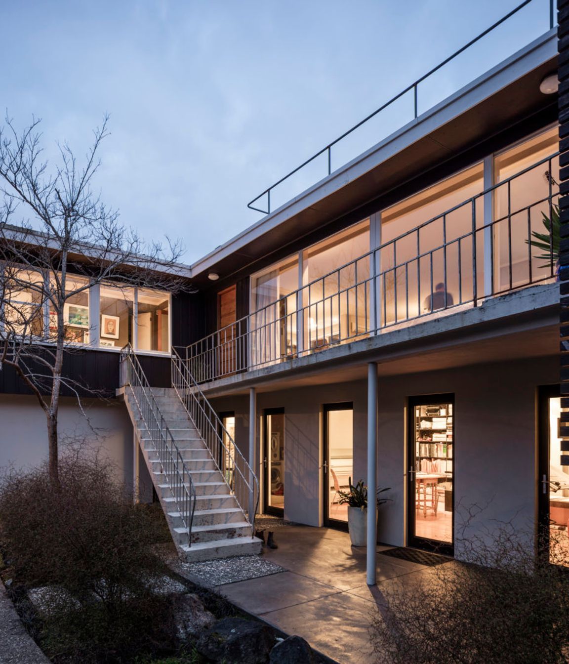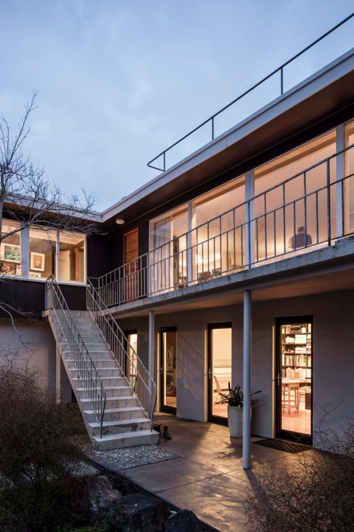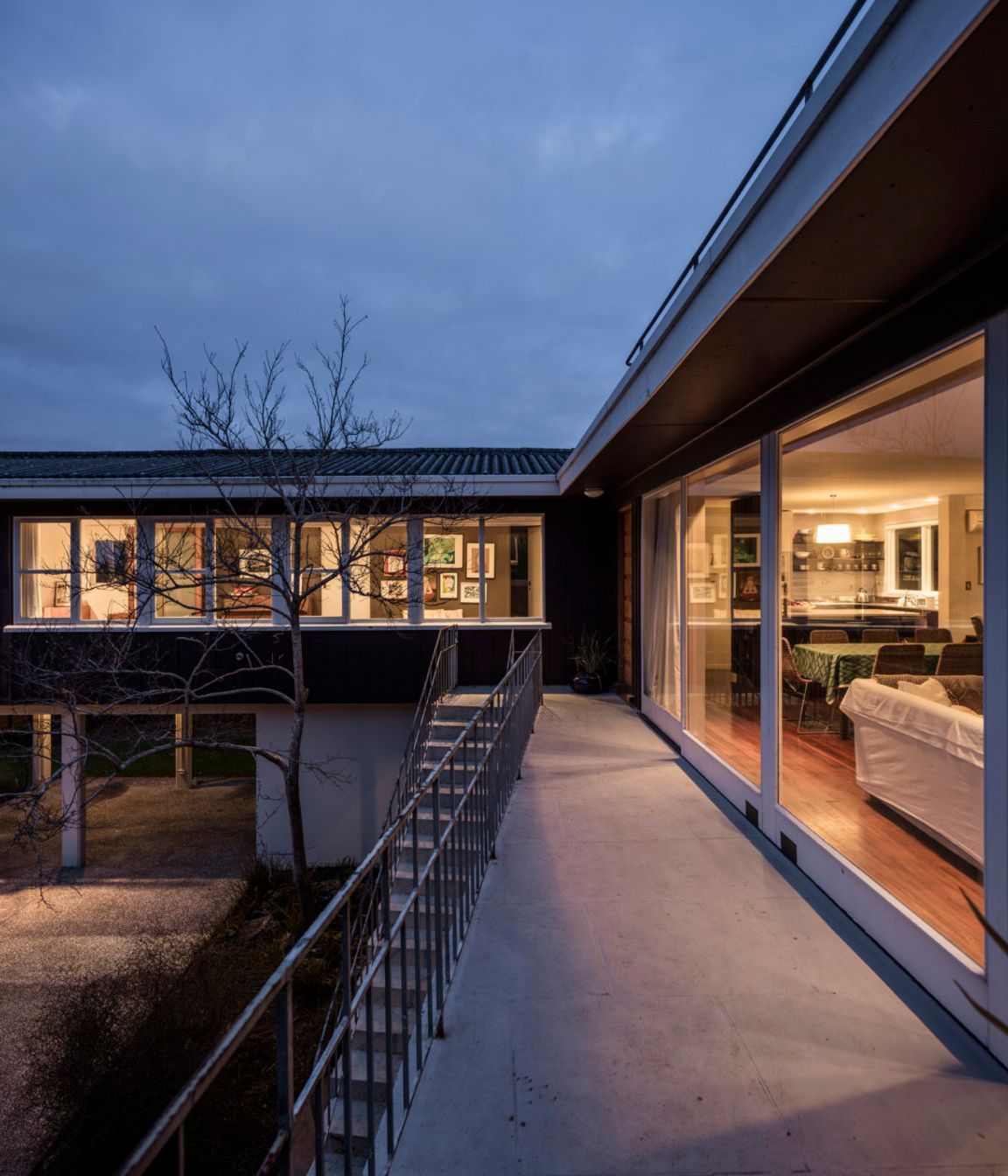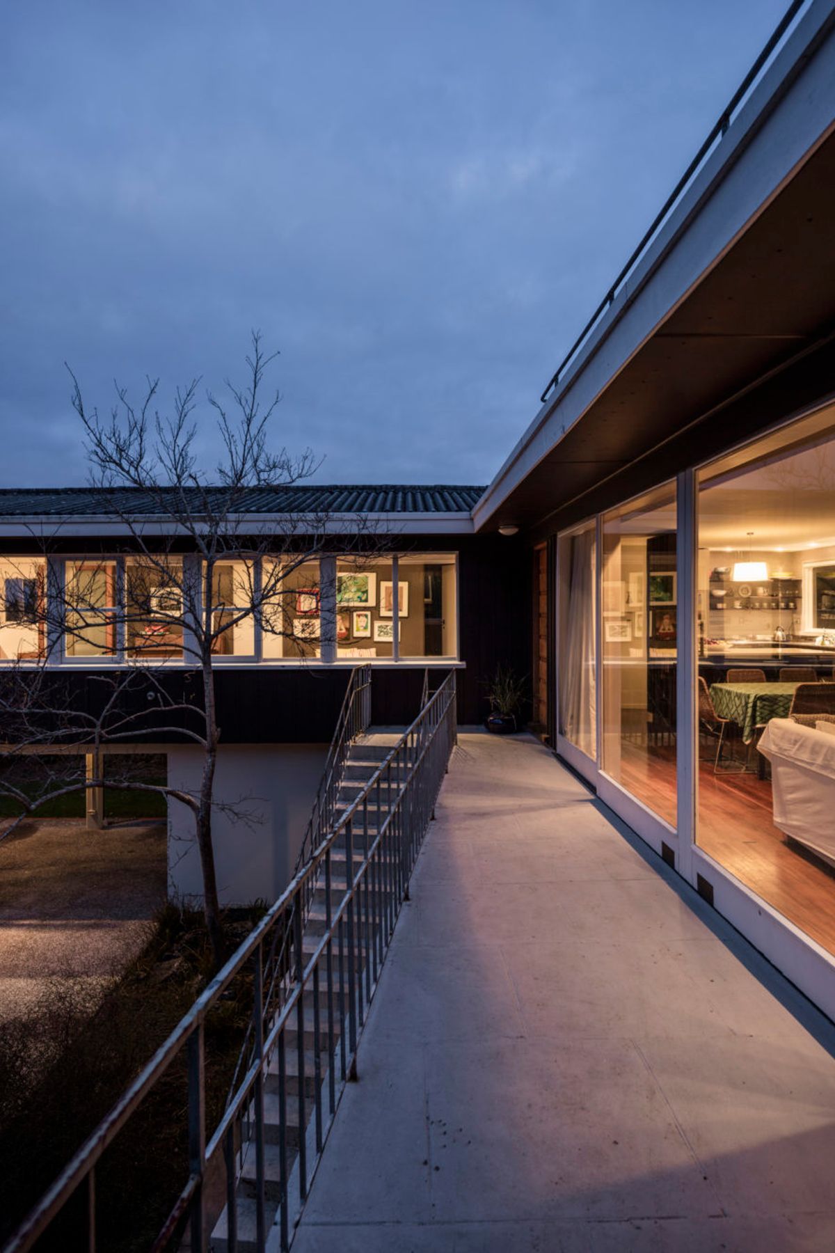 ArchiPro Project Summary - Renovation of a 1950s architect-designed modernist house, enhancing its features with new interior and exterior screens, a bay window to disguise the old gable end, and a refreshed color scheme.
