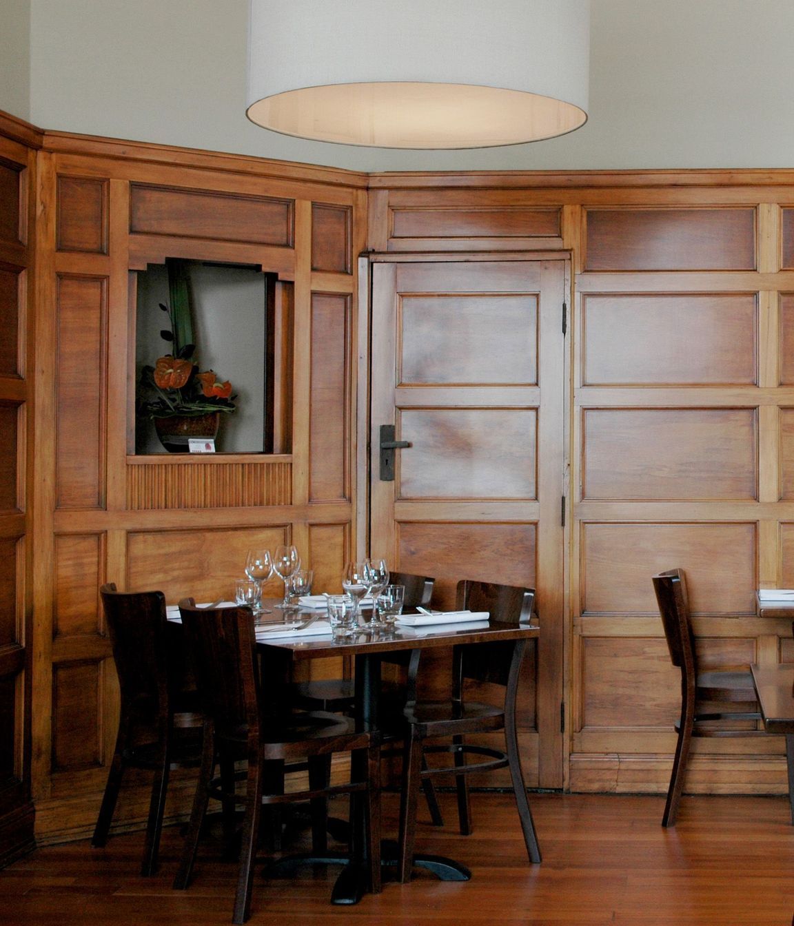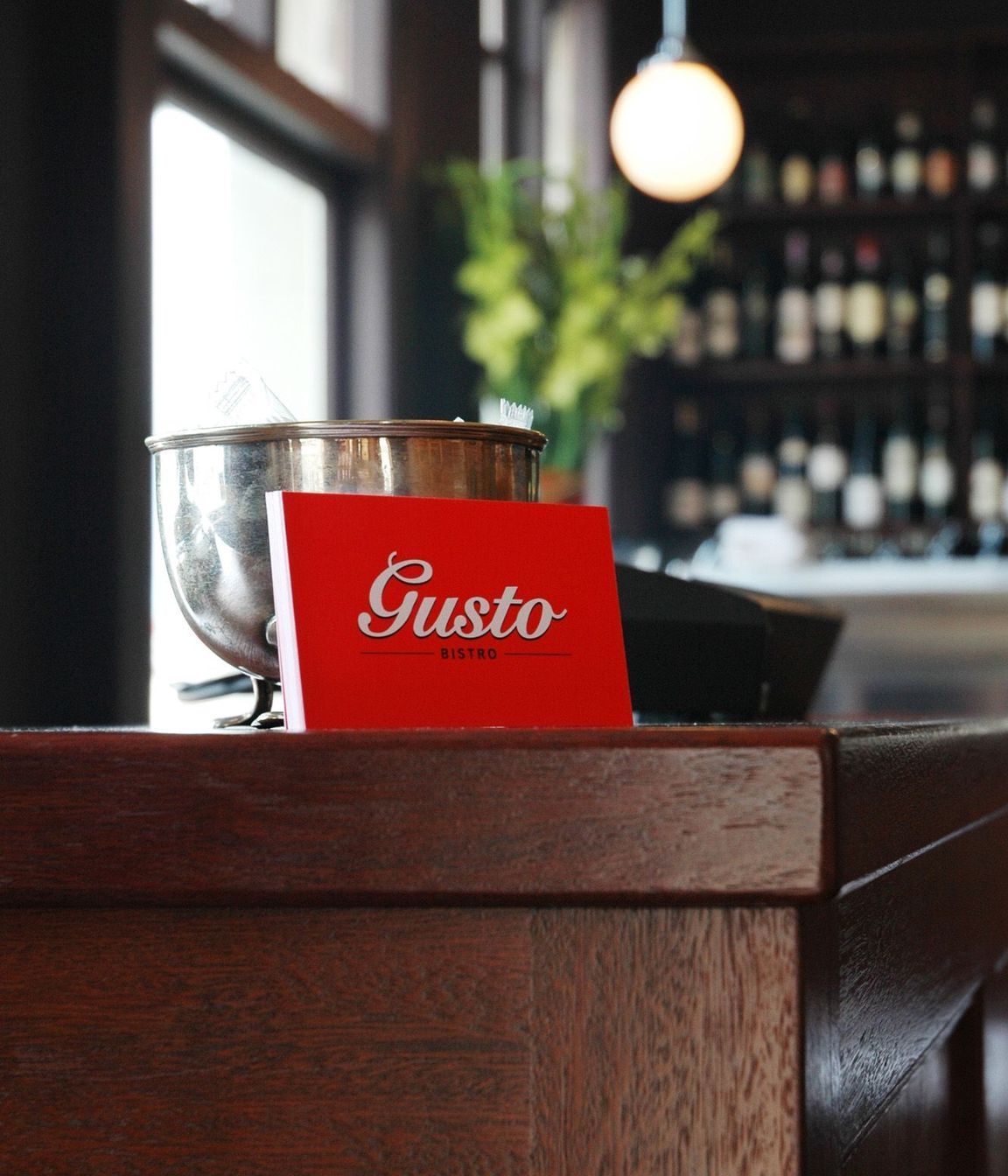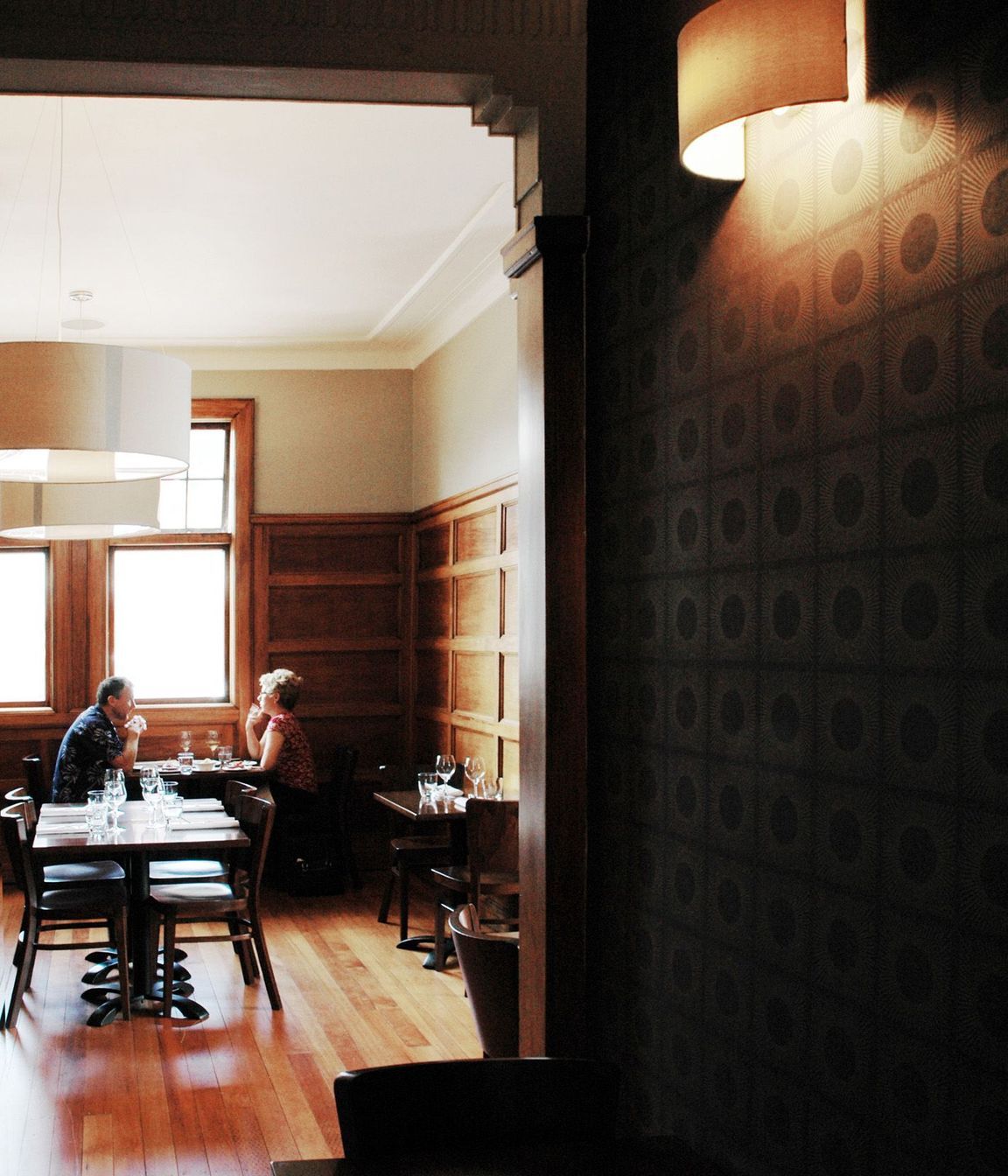 ArchiPro Project Summary - Historic restoration of Gusto Bistro, blending original features with contemporary design elements, featuring a rich colour palette and award-winning interiors.