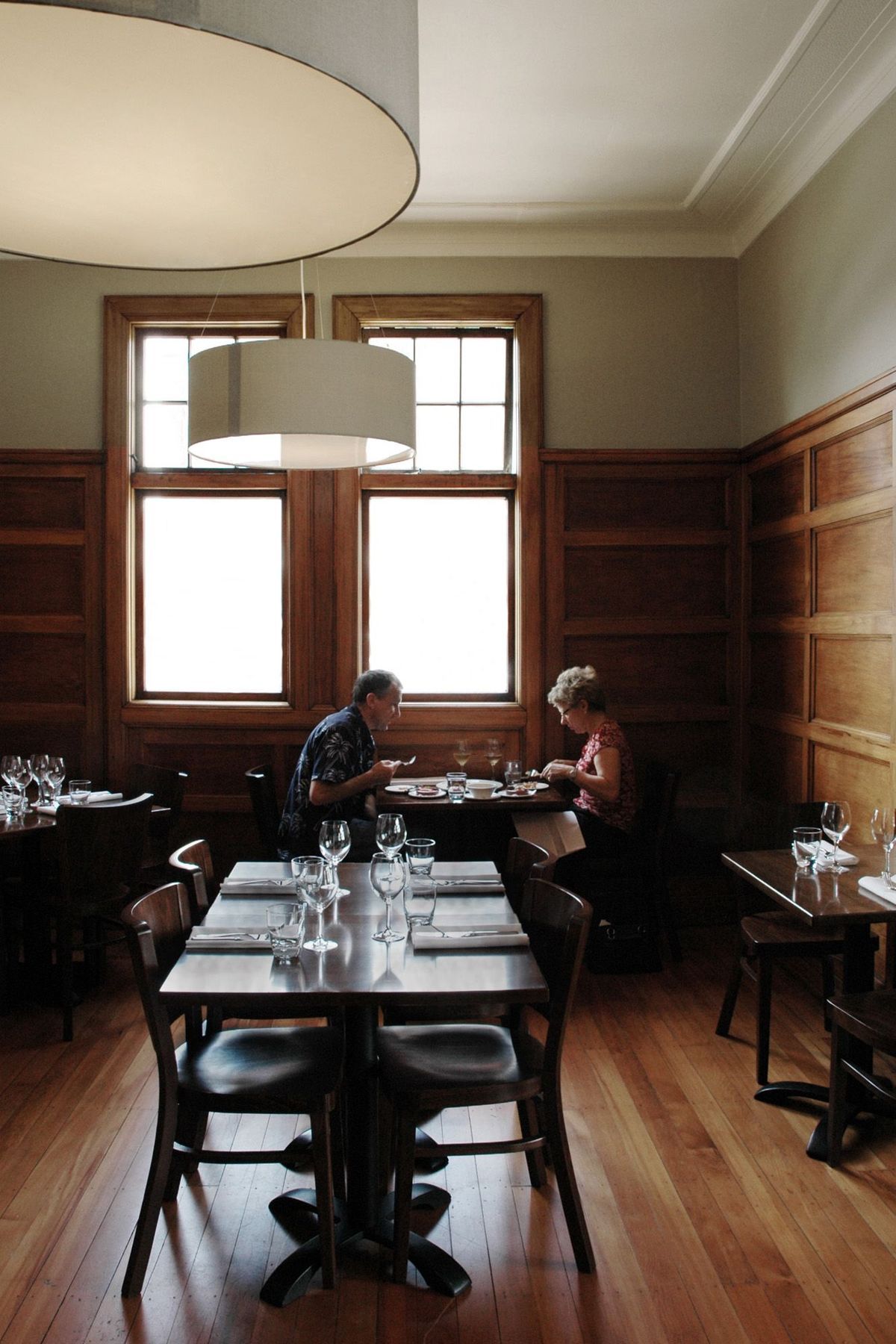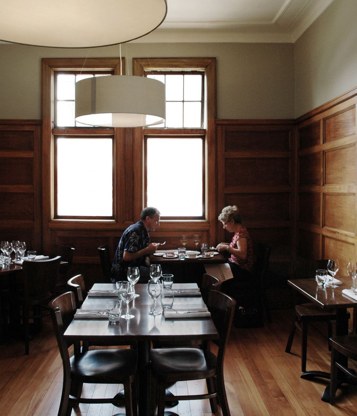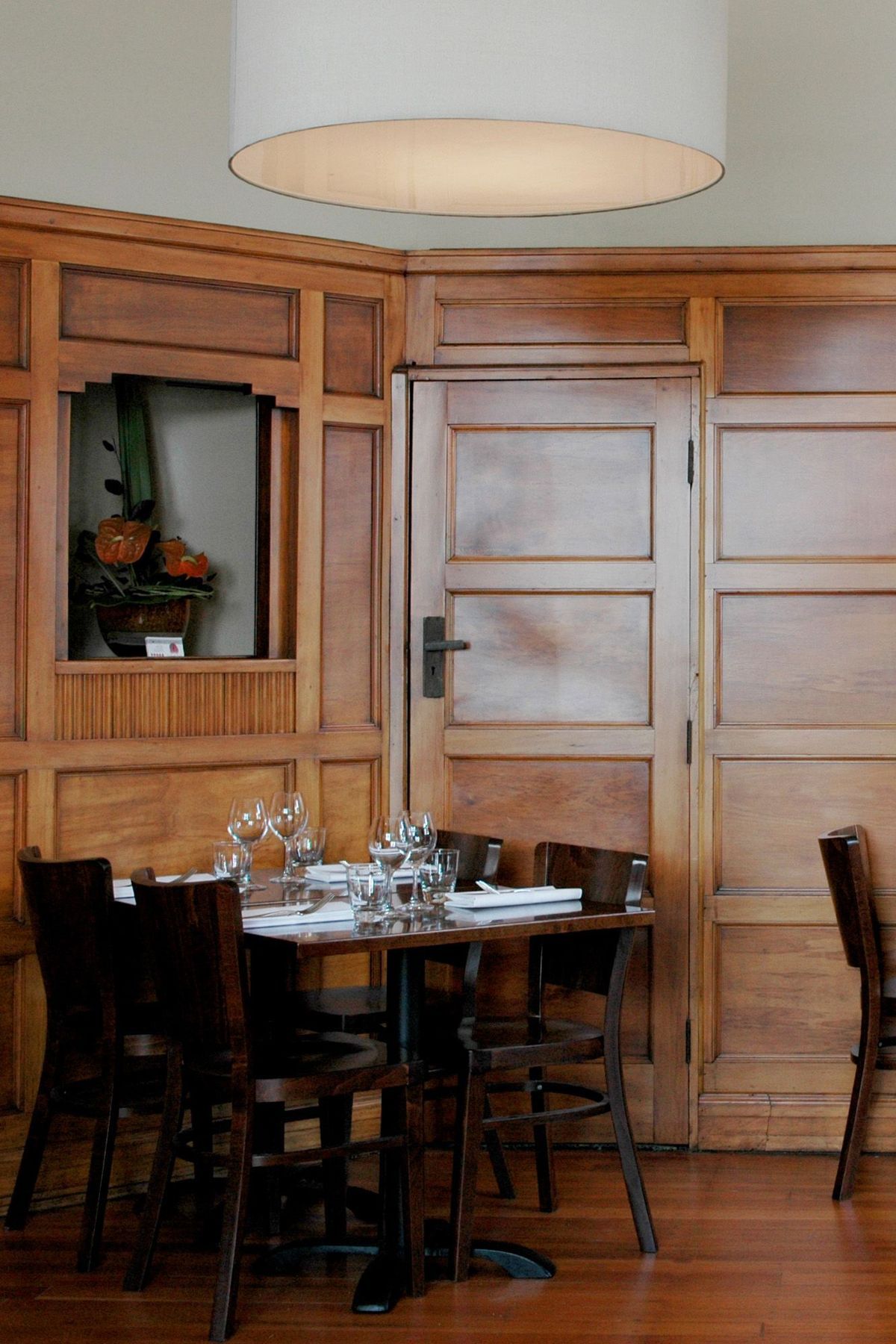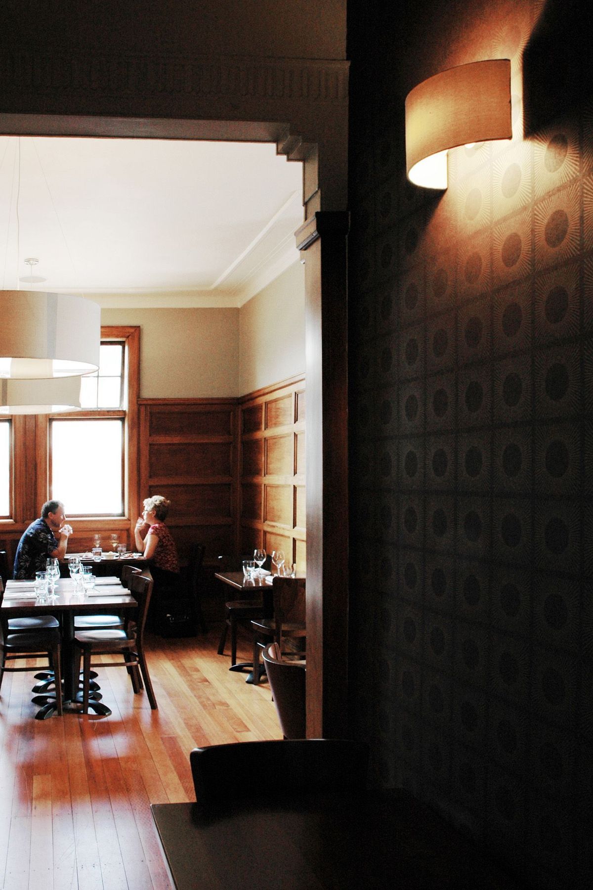 ArchiPro Project Summary - Historic restoration of Gusto Bistro, blending original features with contemporary design elements, featuring a rich colour palette and award-winning interiors.