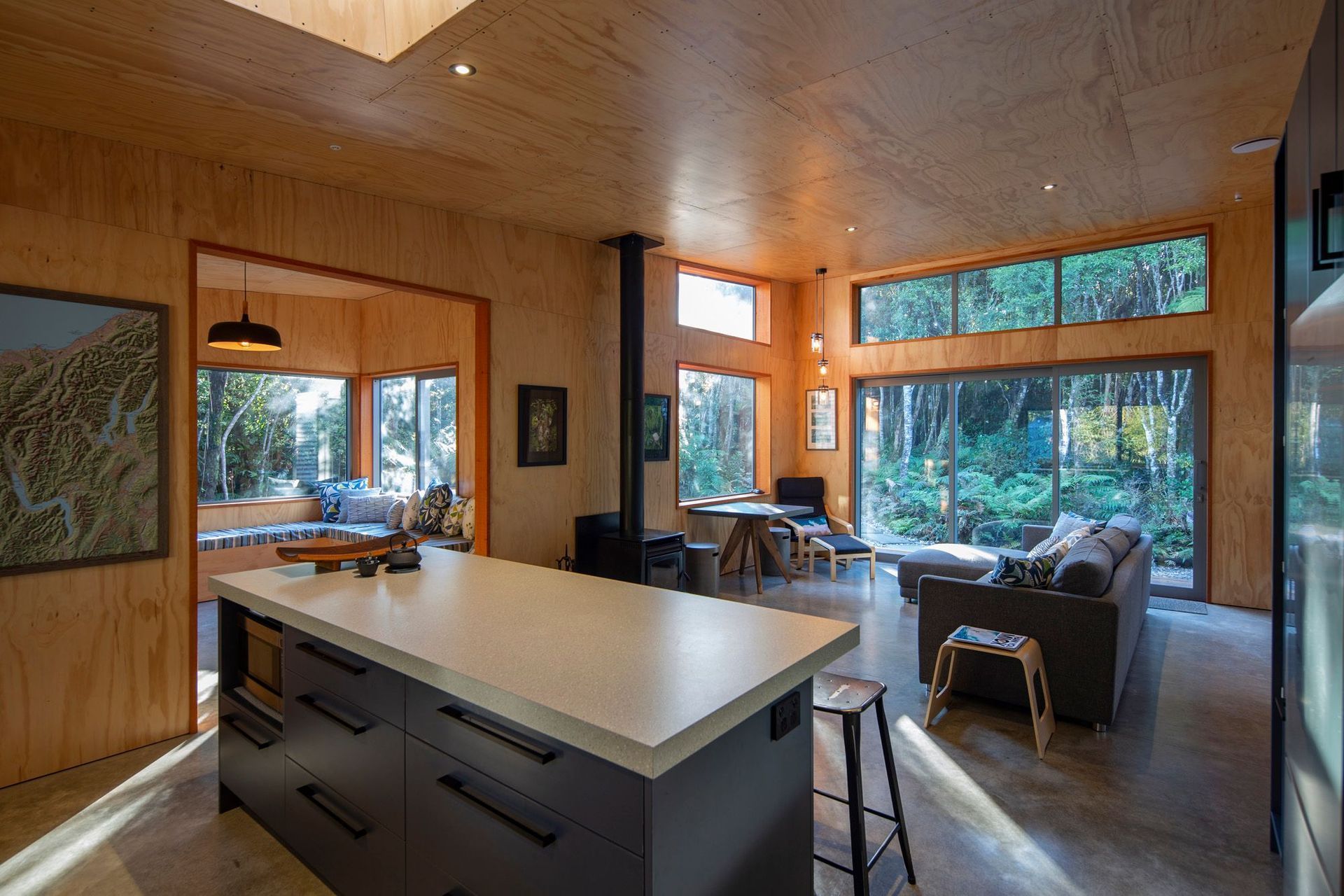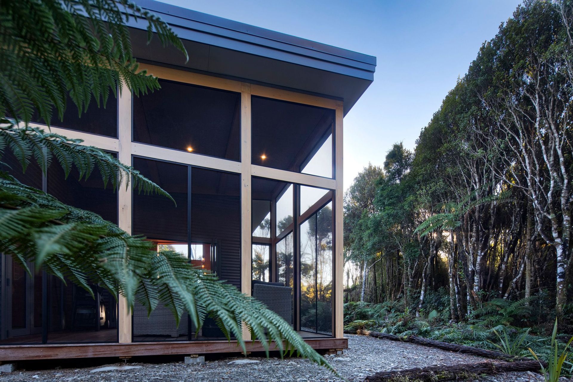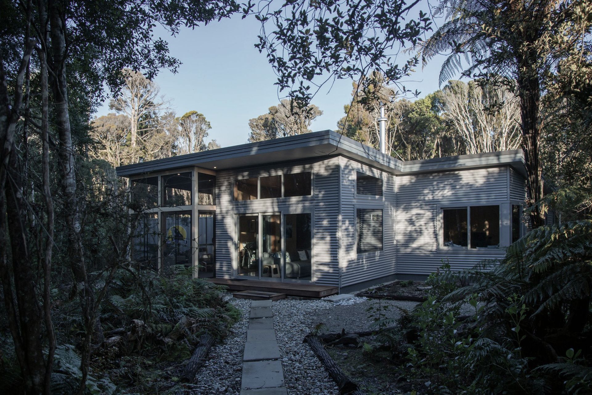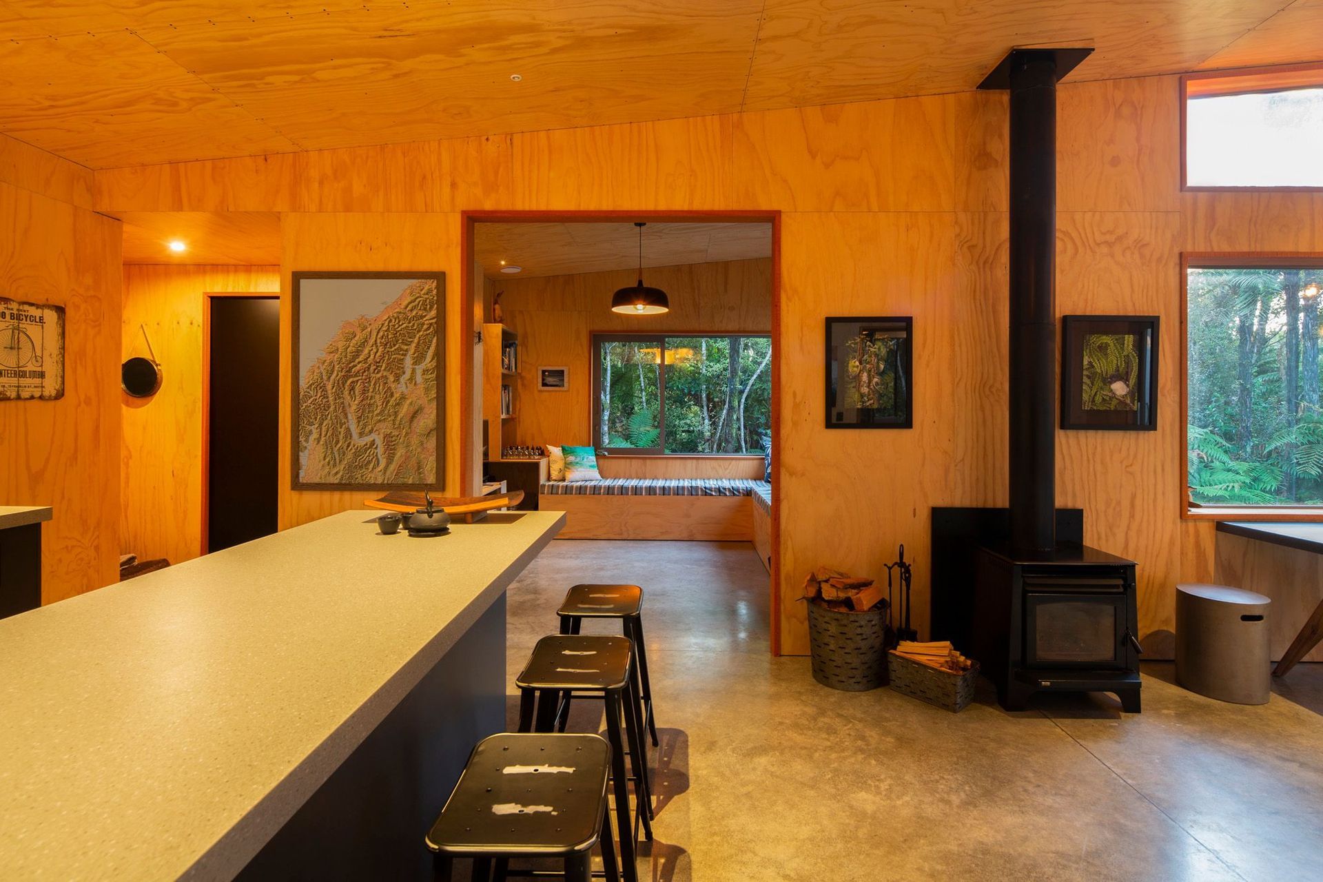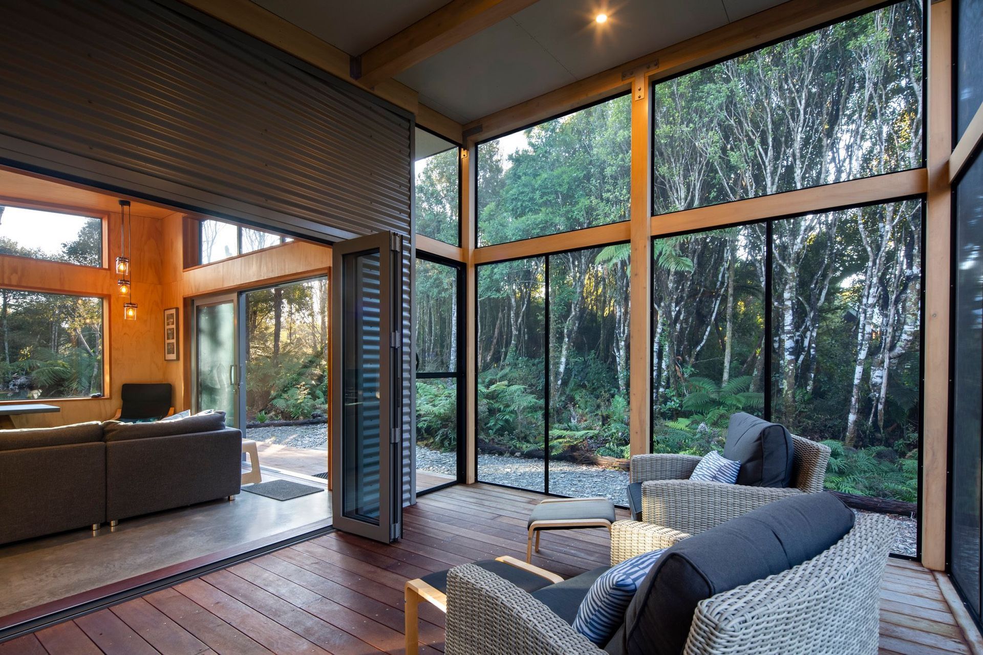 ArchiPro Project Summary - A challenging build in a stunning remote location, featuring a MAXRaft slab, SIP panel construction, double-glazed joinery, and a unique outdoor area, all harmoniously integrated into the breathtaking West Coast native bush.