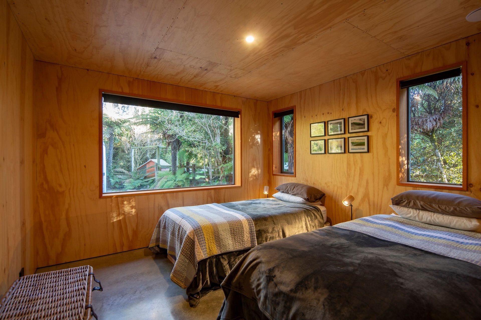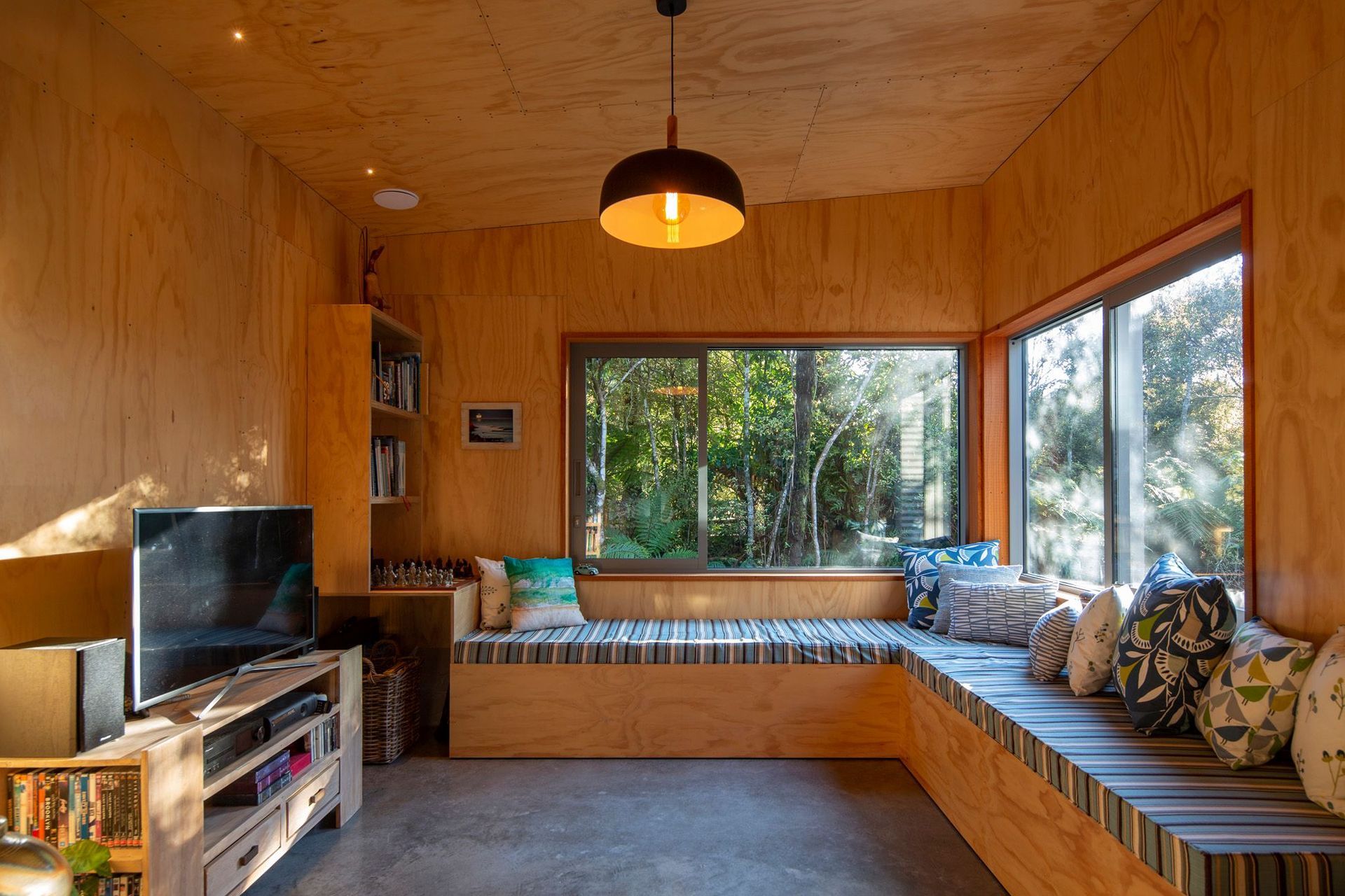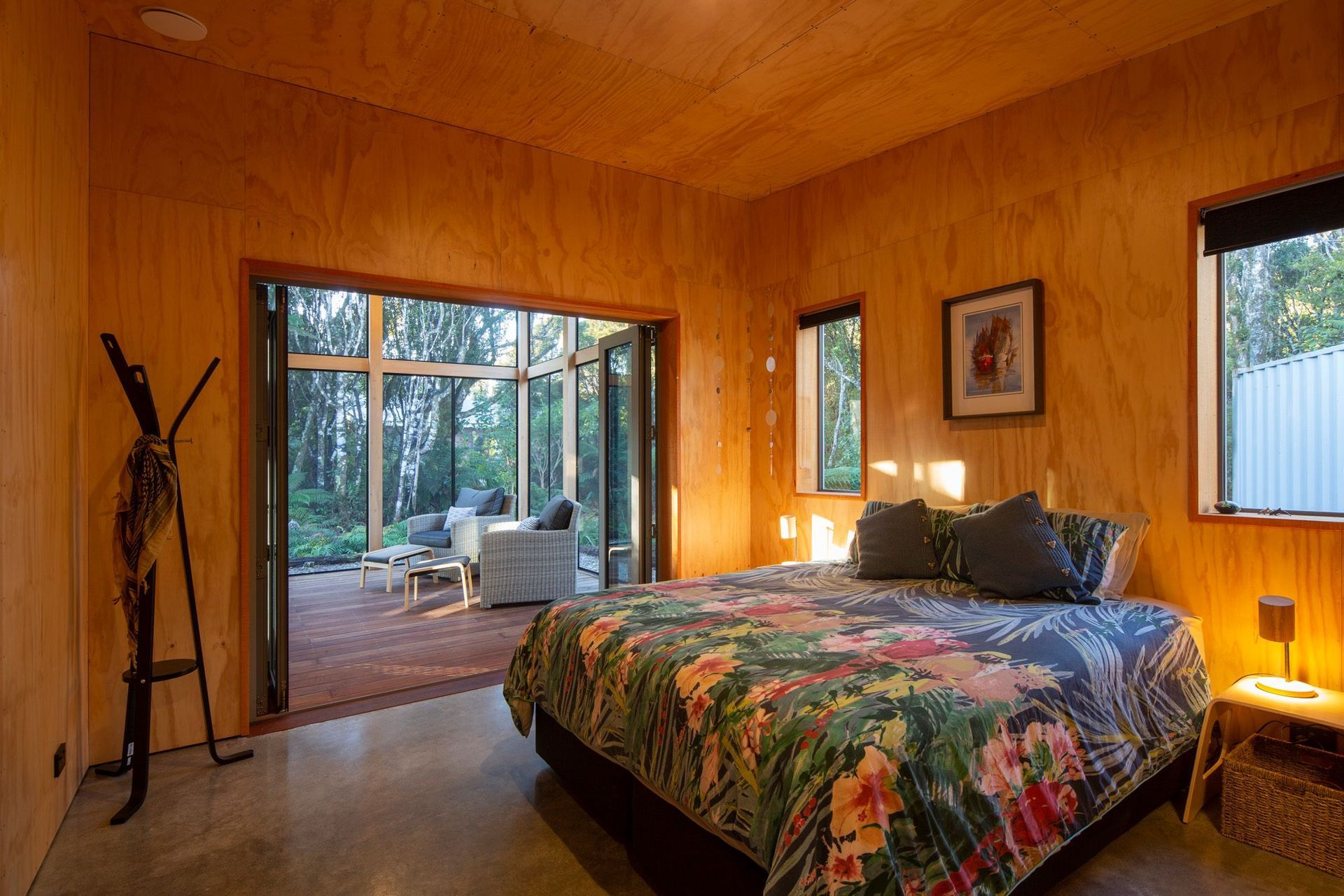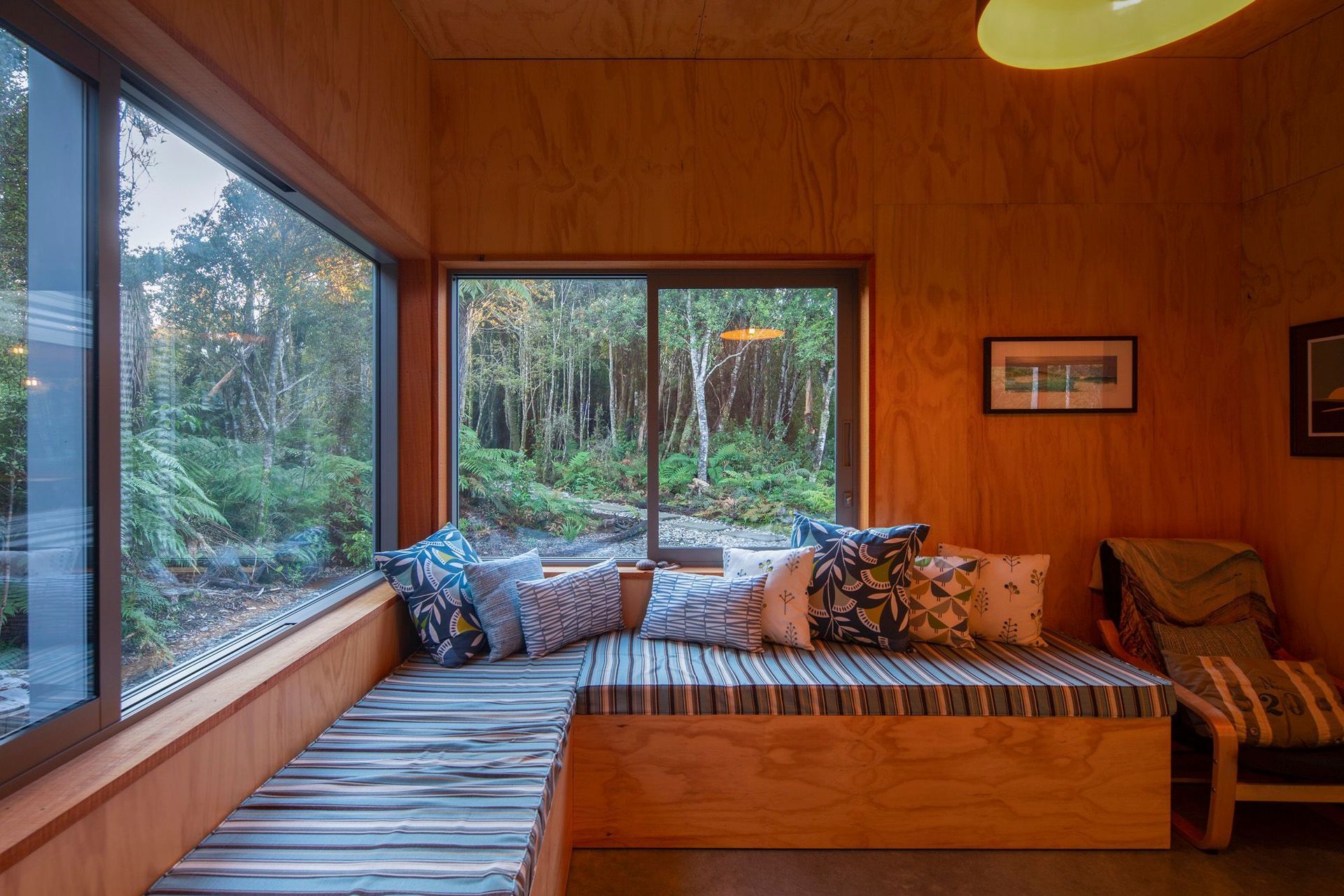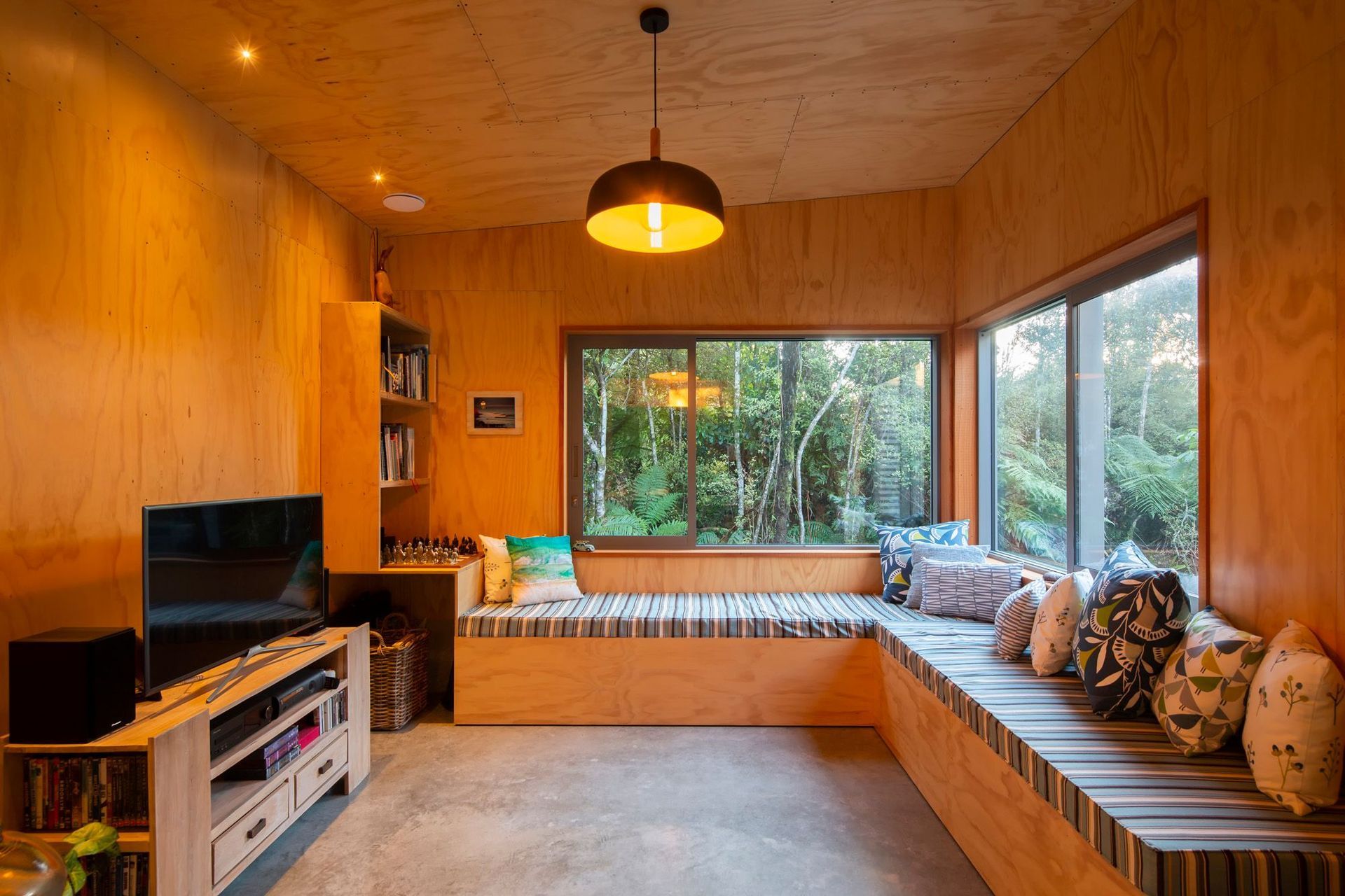 ArchiPro Project Summary - A challenging build in a stunning remote location, featuring a MAXRaft slab, SIP panel construction, double-glazed joinery, and a unique outdoor area, all harmoniously integrated into the breathtaking West Coast native bush.