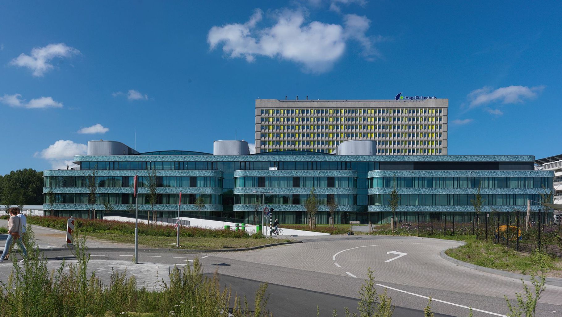 ArchiPro Project Summary - Haga Hospital: A state-of-the-art healthcare facility in The Hague, designed by MVSA Architects, featuring soft lines, transparency, and abundant daylight, enhanced by a unique EuraMica finish in onyx blueish-green to reflect its innovative and healing ethos.