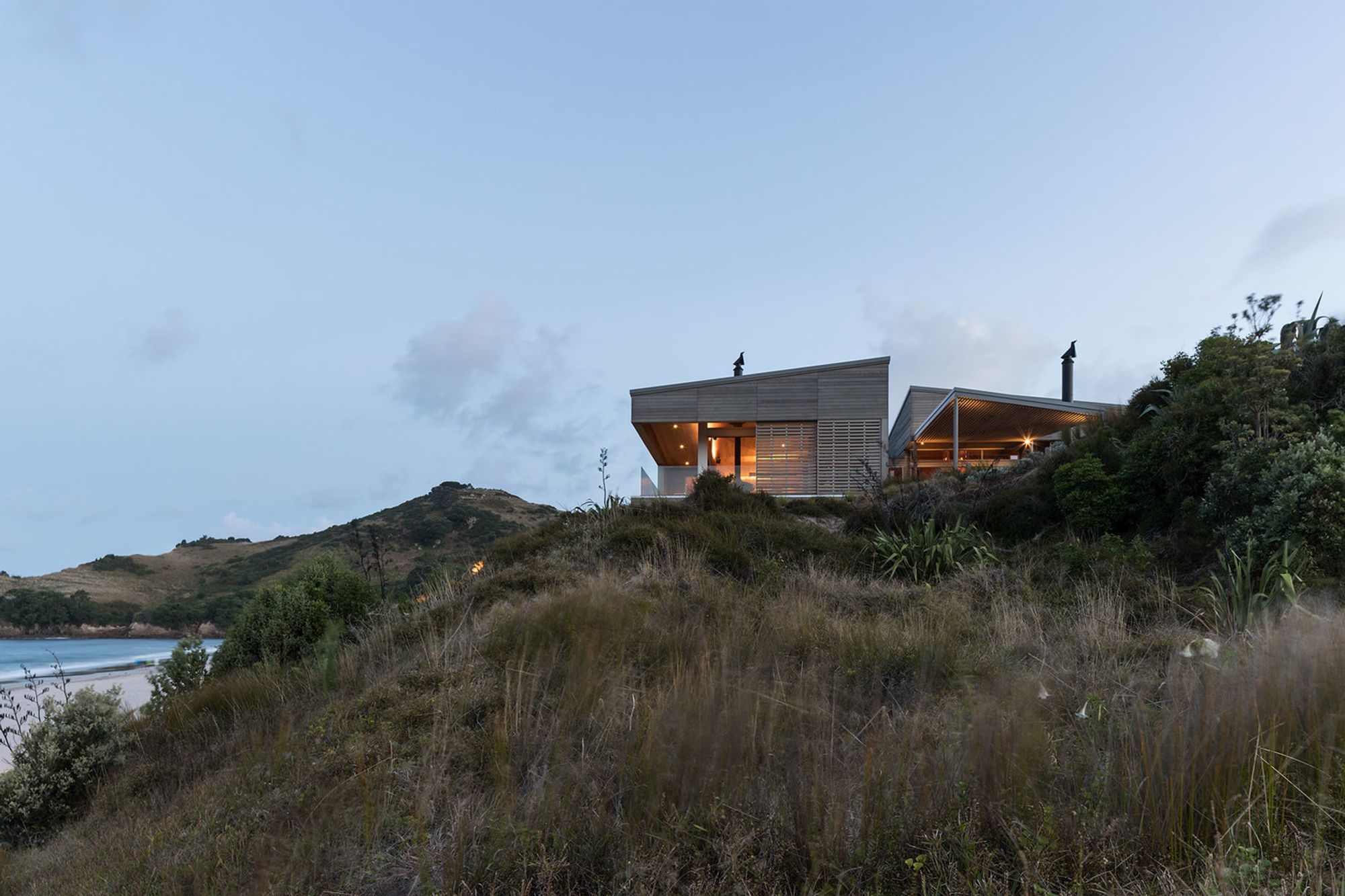 ArchiPro Project Summary - A sculptural retreat in Hahei, harmoniously integrated with its landscape, featuring innovative design elements that enhance views and privacy, utilizing natural materials for a serene escape from urban life.