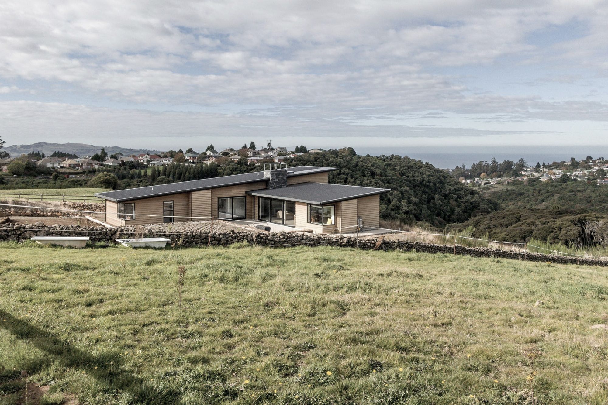 ArchiPro Project Summary - The Halfway Bush House is a charming cottage in a rural area, featuring a beautifully designed roof and stunning views from its sloping land lot.