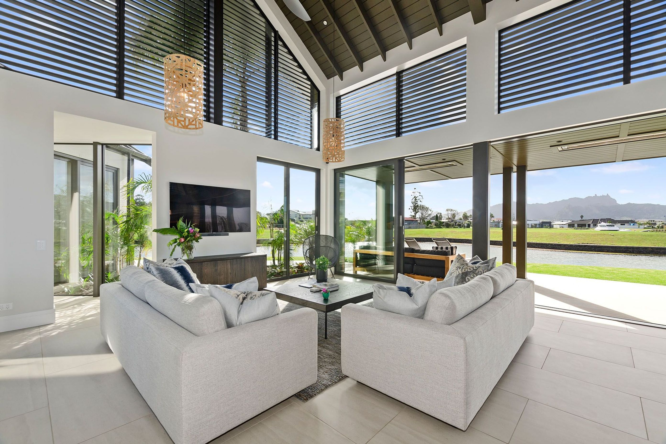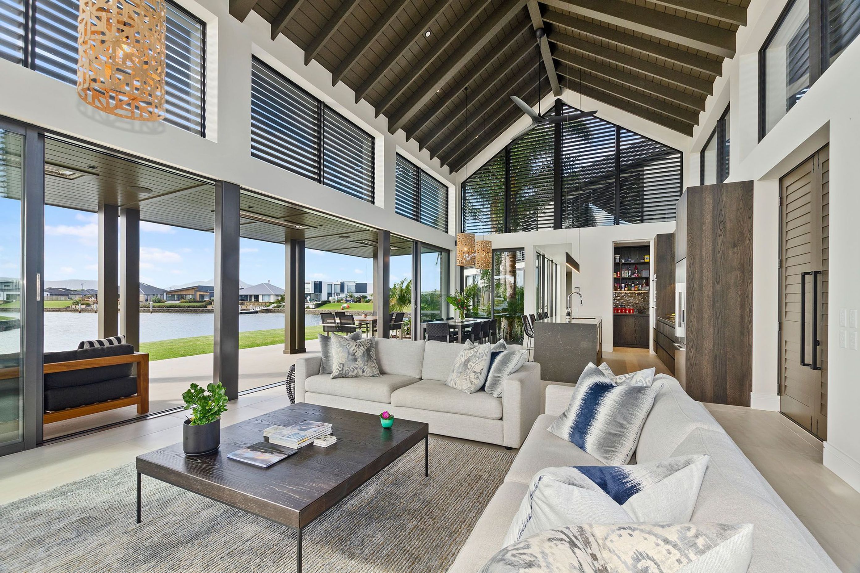 ArchiPro Project Summary - Balinese inspired resort-style residence at Marsden Cove, Northland, featuring high-spec materials, a stunning 7m raking ceiling, and an inviting alfresco space, recognized as a gold reserve finalist in the 2018 Auckland Registered Master Builders House of the Year competition.