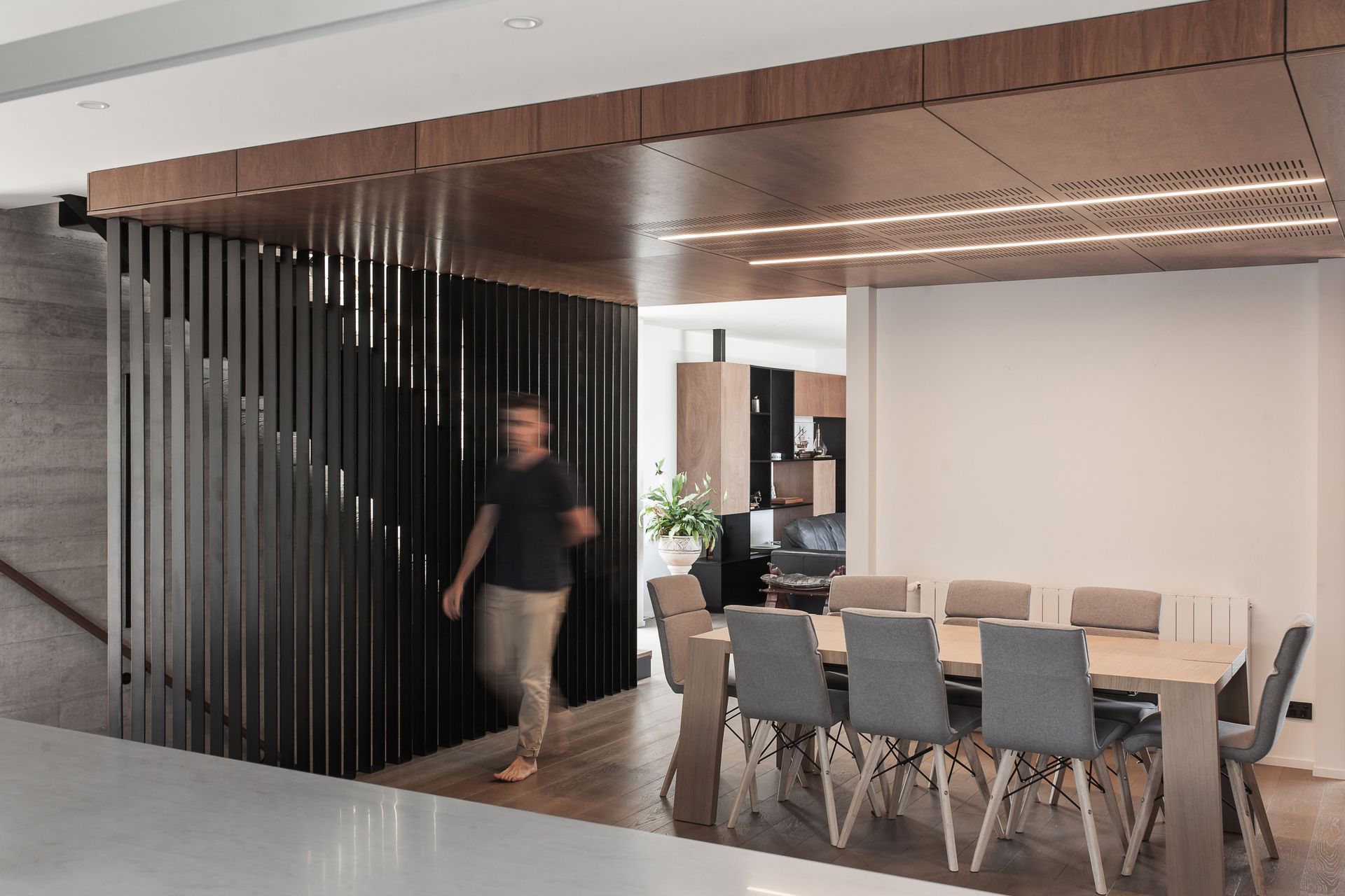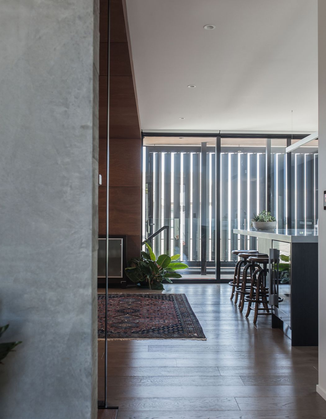 ArchiPro Project Summary - A contemporary concrete and cedar family home designed to maximize sea views and withstand coastal conditions, featuring a robust material palette and innovative design elements for privacy and light filtration.